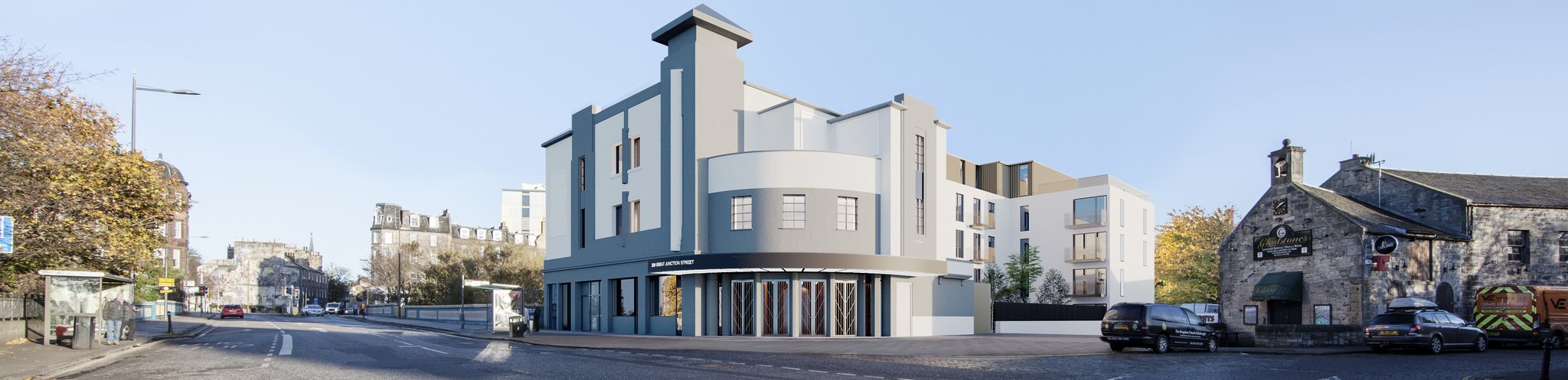 Indelibly woven into Edinburgh’s cityscape is Great Junction Street. Opened in December 1938 as The State Cinema, it seated 1650 patrons in the main cinema and boasted four shops, two billiard halls, and a skittle alley on the two floors above the foyer. The original use of the building is in perfect step with the popular use of Art Deco for public buildings such as government headquarters, theatres, commercial buildings, and cinemas.