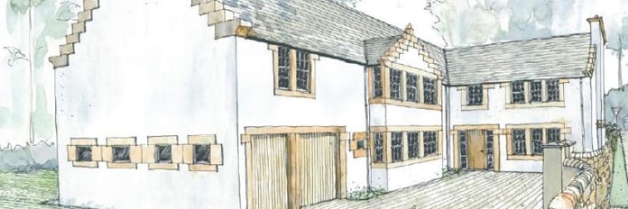 Planning consent was granted in 2008 for the construction of a classical 5 bedroom family home. The scale and design of the house is of a high quality and will be constructed of stone and rendered block walls, slate roof and sash and case windows. The house was designed by Richard Hall Architects in the vernacular style.