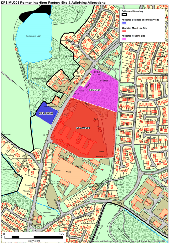 Designated in the Dumfries & Galloway Local Development Plan (LDP2) as DFS.MU203, allocated for mixed-use development including residential, commercial, and leisure uses.