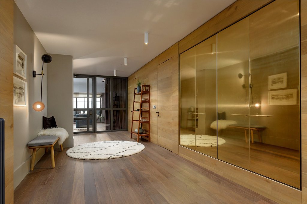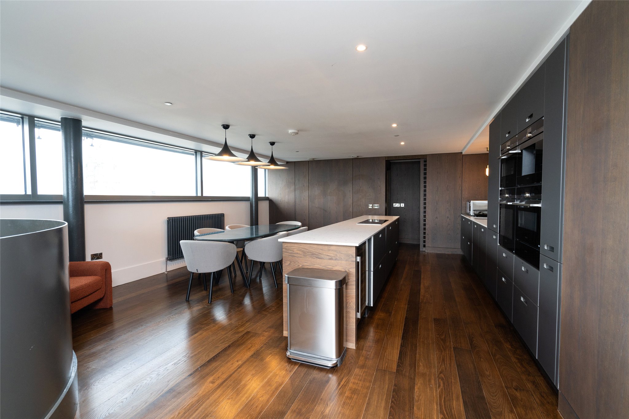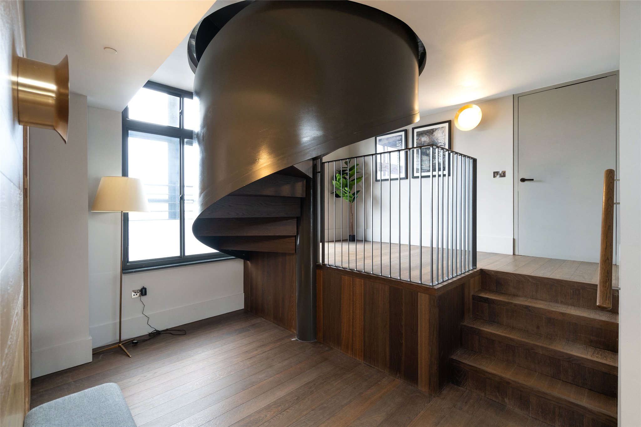 The Penthouse comprises of a large entrance hallway with a feature spiral staircase, two open plan living areas—one with a drink prep area, and beautiful glazed Crittal screens throughout. Each of the three-bedroom suites have dressing areas with fitted wardrobes and luxurious bathrooms plus an additional family bathroom.