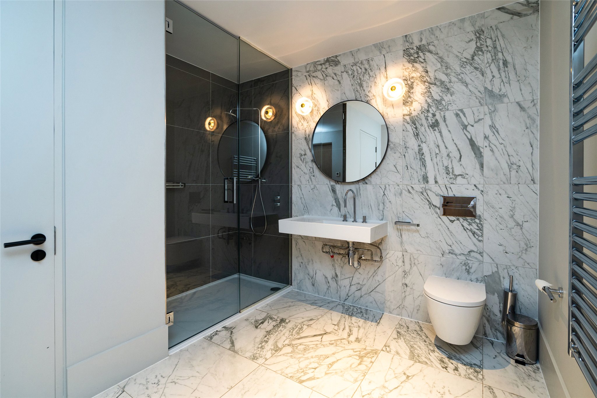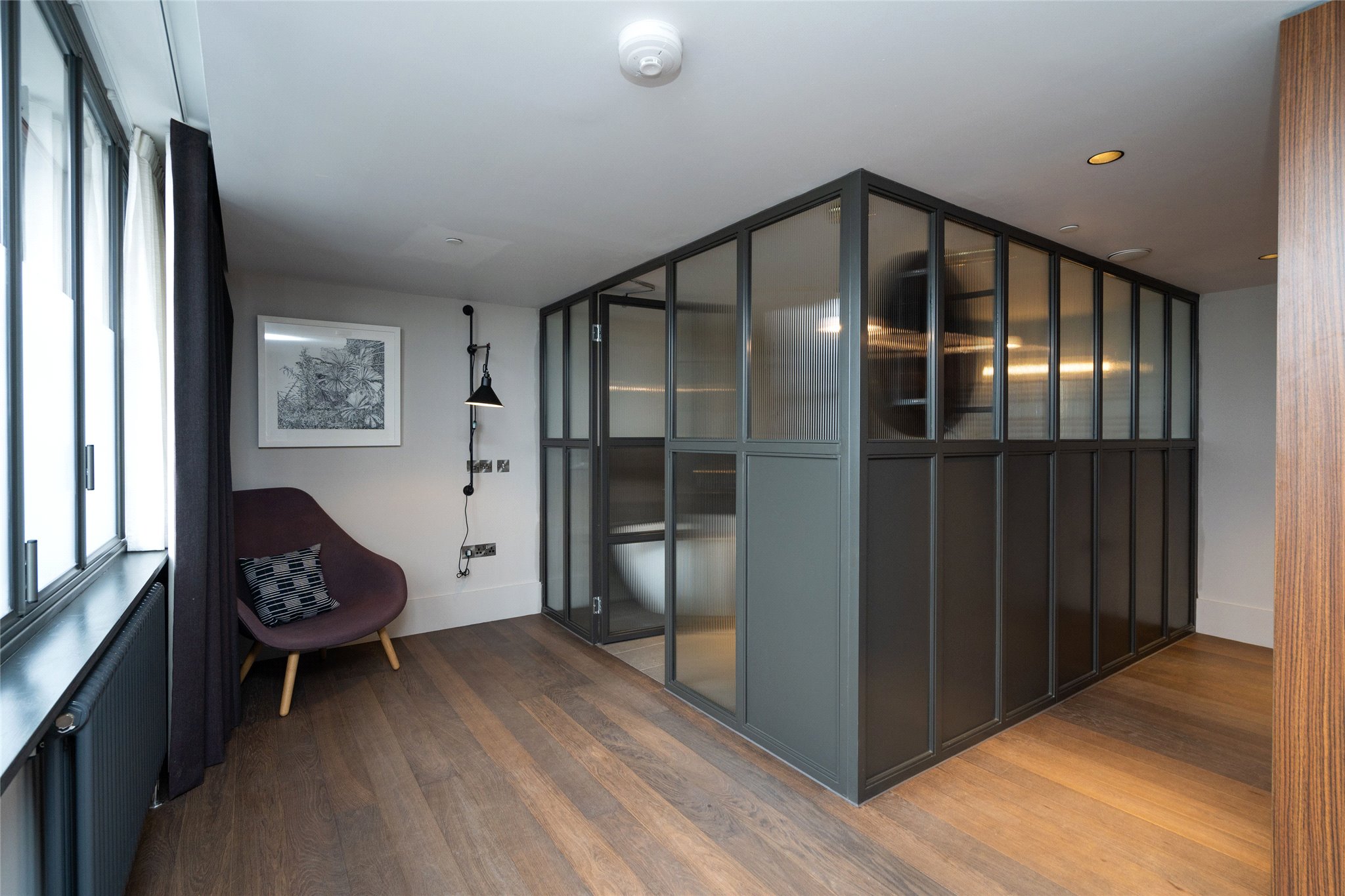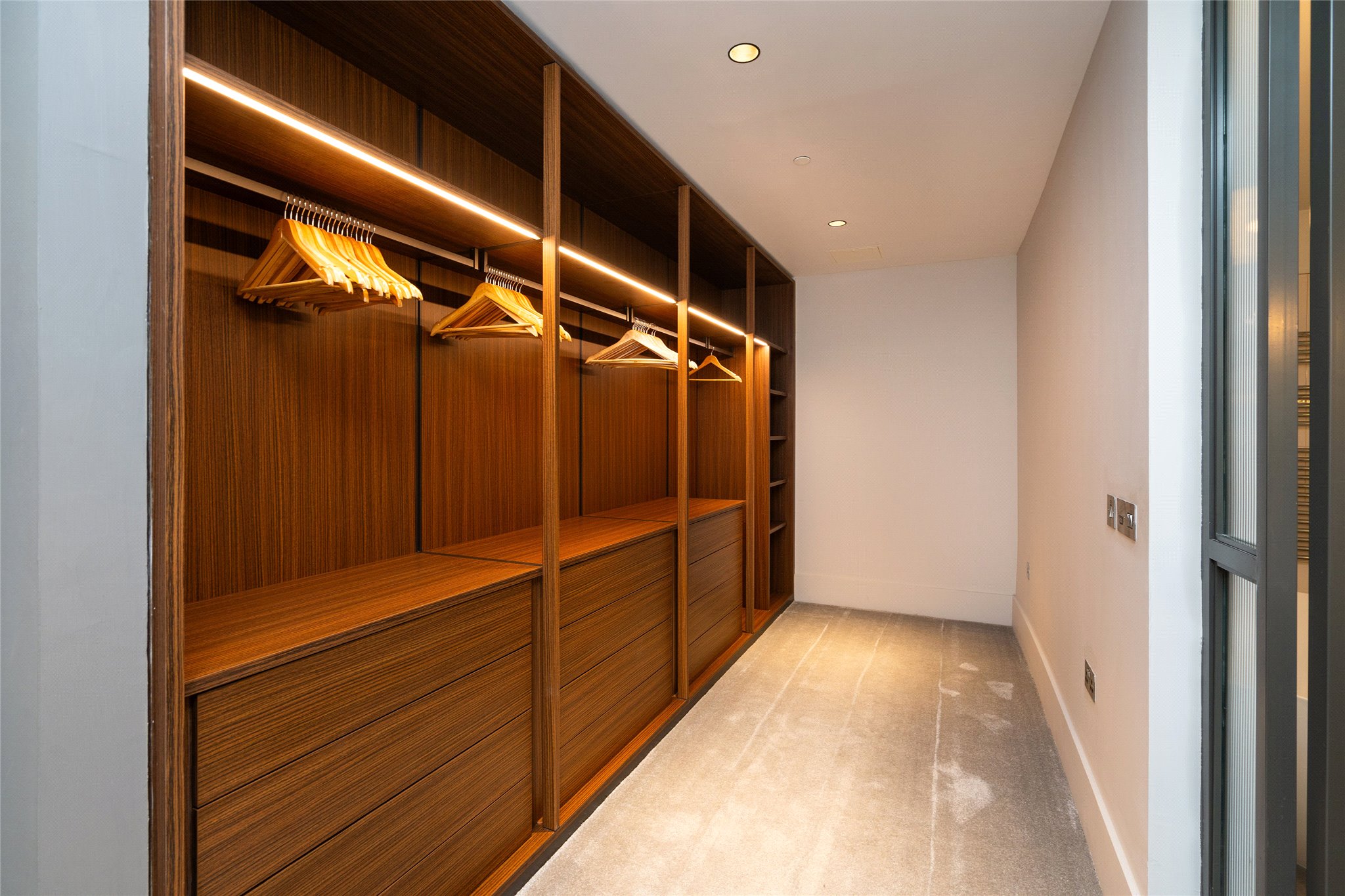 The Penthouse comprises of a large entrance hallway with a feature spiral staircase, two open plan living areas—one with a drink prep area, and beautiful glazed Crittal screens throughout. Each of the three-bedroom suites have dressing areas with fitted wardrobes and luxurious bathrooms plus an additional family bathroom.