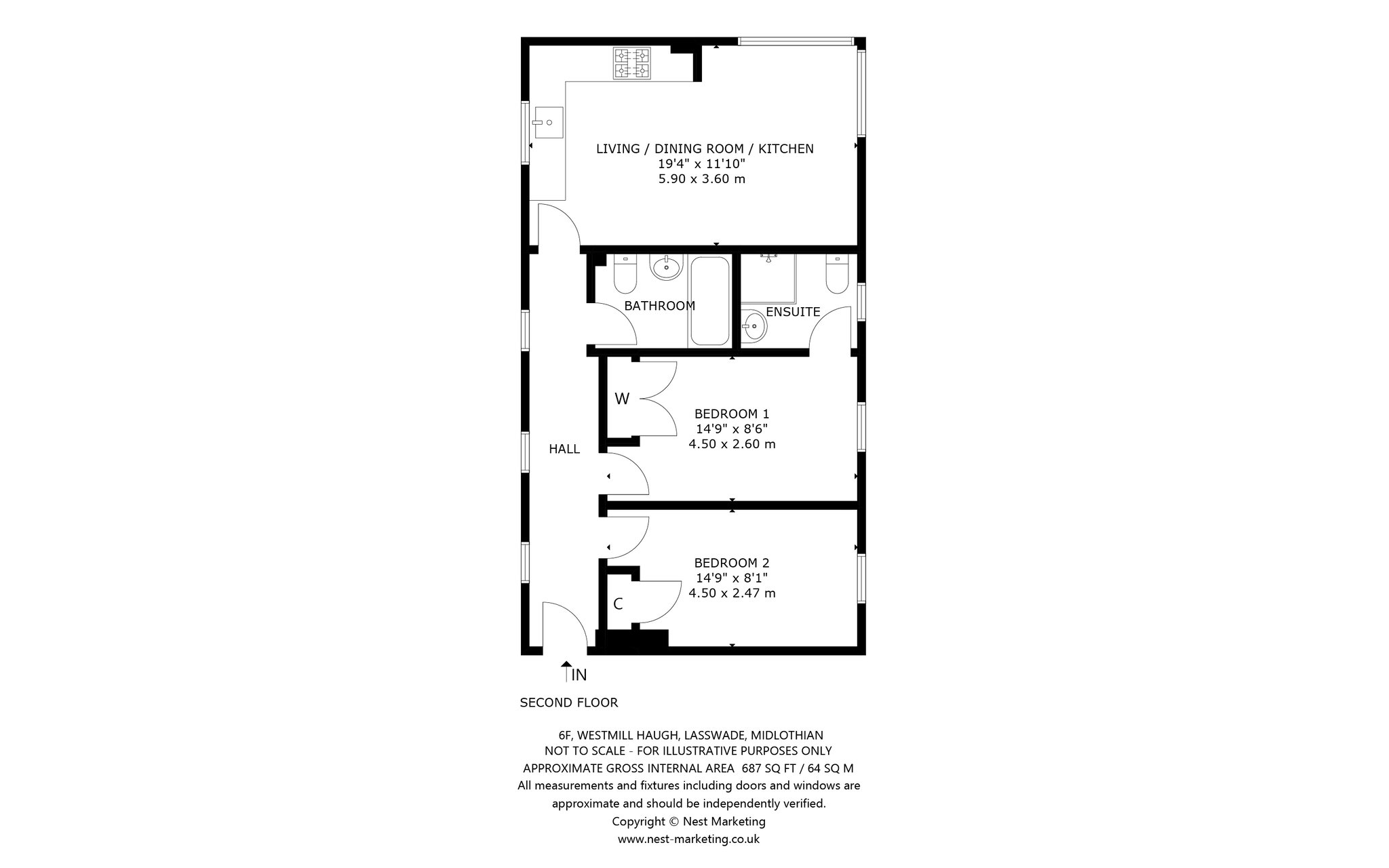 A contemporary two-bedroom second floor flat forming part of a modern residential development, quietly located in a semi-rural setting in Lasswade, to the south of Edinburgh.