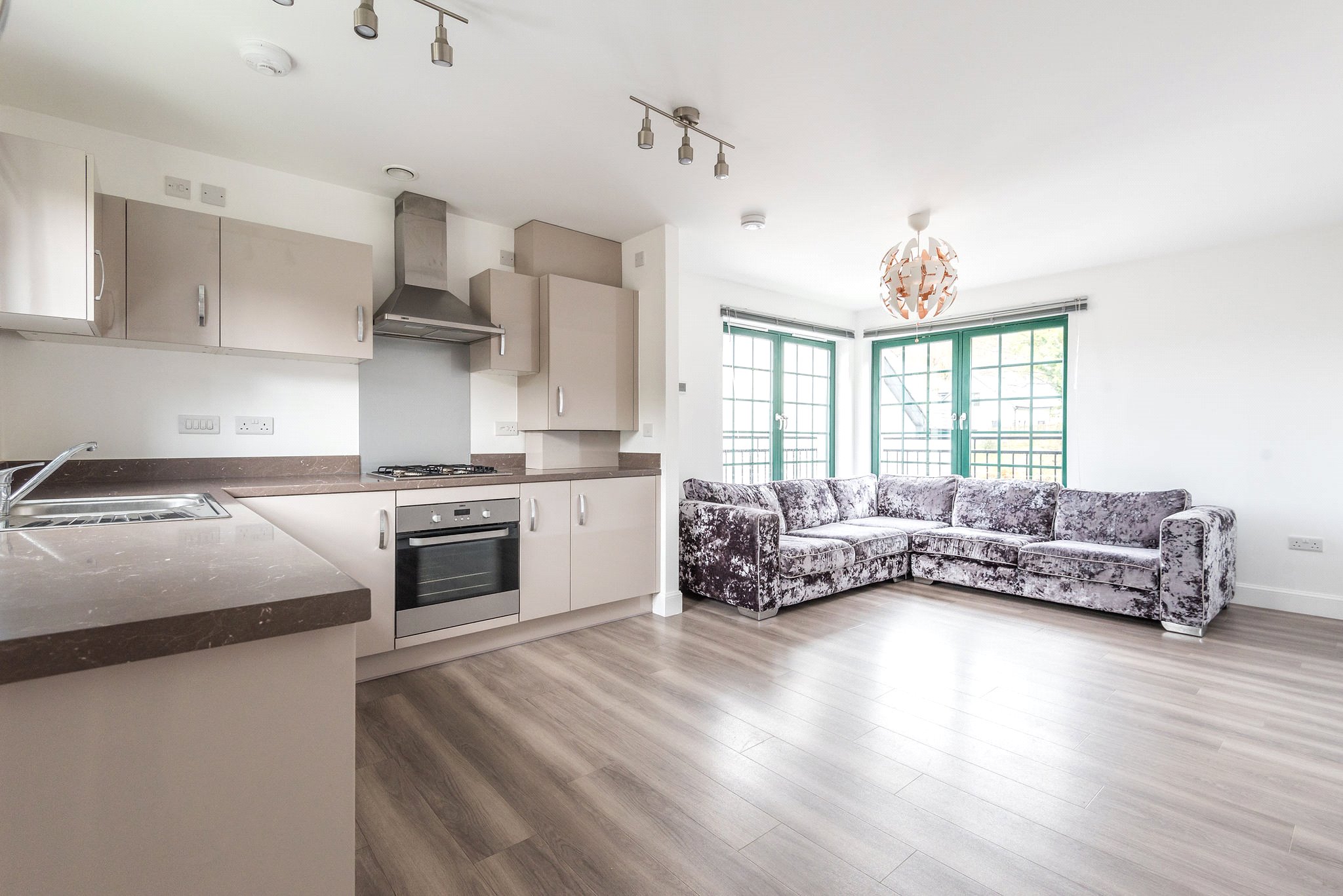 Entrance hallway; Lovely and bright open-plan living and dining room with modern fitted kitchen and integrated appliances; Principal bedroom with fitted wardrobes and ensuite shower room; Second double bedroom with fitted wardrobes; Main bathroom with bath, sink and WC.