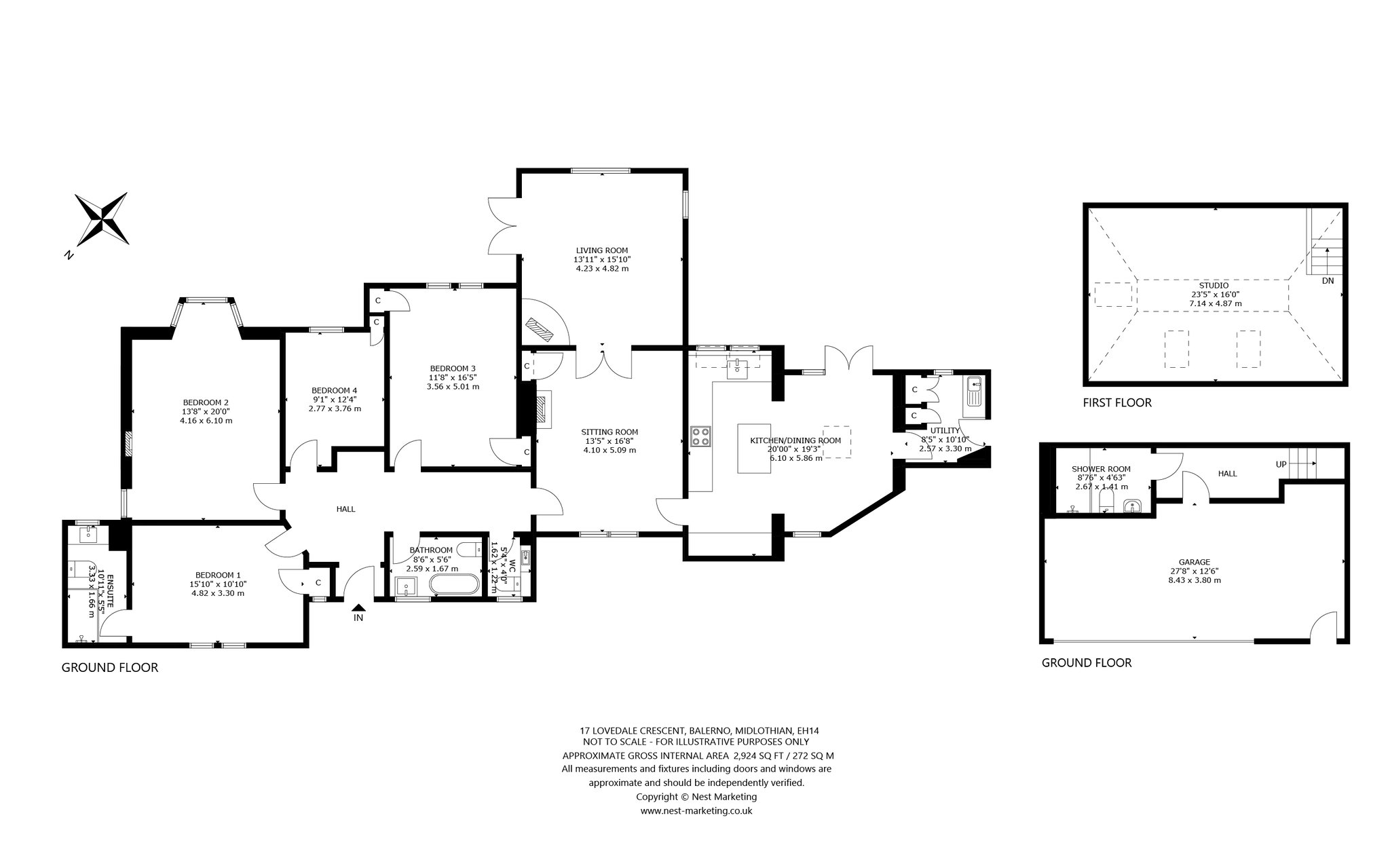 Further separate accommodation is available in the studio space above the garage. With its own shower room, this makes a wonderful guest annexe, office or recreational area.
