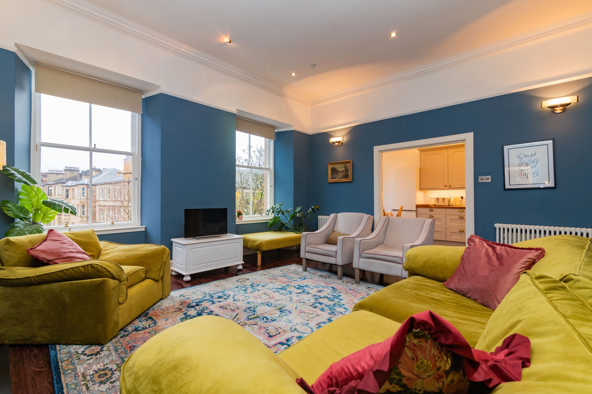 25 Buckingham Terrace is set back from Great Western Road behind mature trees with south facing views down Kersland Street. This means the apartment benefits from lots of natural light. Glasgow's Botanical Gardens are within a few yards whilst Byres Road is also easily accessible providing a wide selection of fashionable delicatessens, boutiques, restaurants and bars.