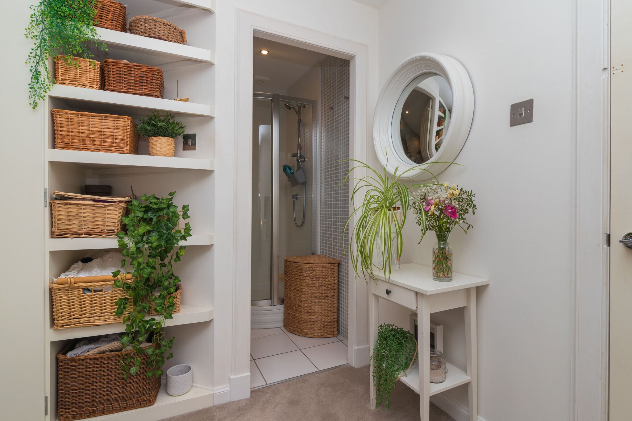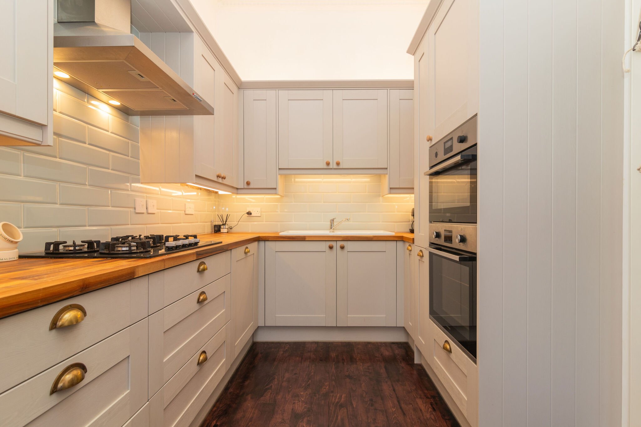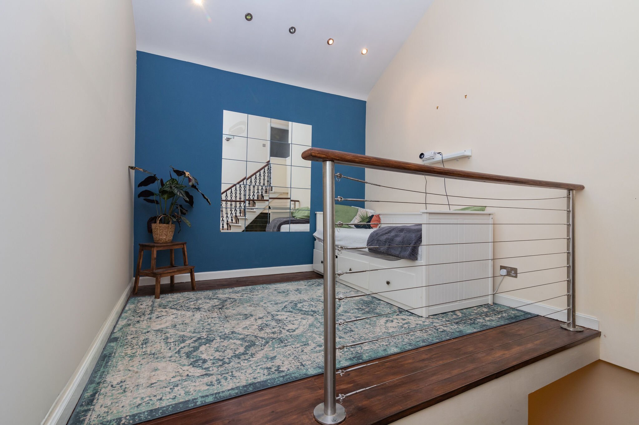 The apartment is accessed via a grand reception hall with original floor tiles and a sweeping staircase with wrought iron balustrade to the first floor. There is then a staircase that leads to the lower level accommodation. The floor plan shows there is a hallway that with access to a bright lounge with traditionally styled living flame gas fire and open views. There are double door that lead to a luxurious fitted kitchen with integrated appliances . In addition there is a large master bedroom with contemporary en-suite shower room. Lastly there is a three piece bathroom. A unique feature of the apartment is a mezzanine level bathed in light from velux windows above which is ideal for a home office. The upper floor includes three double bedrooms including the second bedroom with an en-suite shower room. There is a mixture of hardwood, carpeted and tiled flooring as well as gas central heating, low voltage lighting and some restored original details.