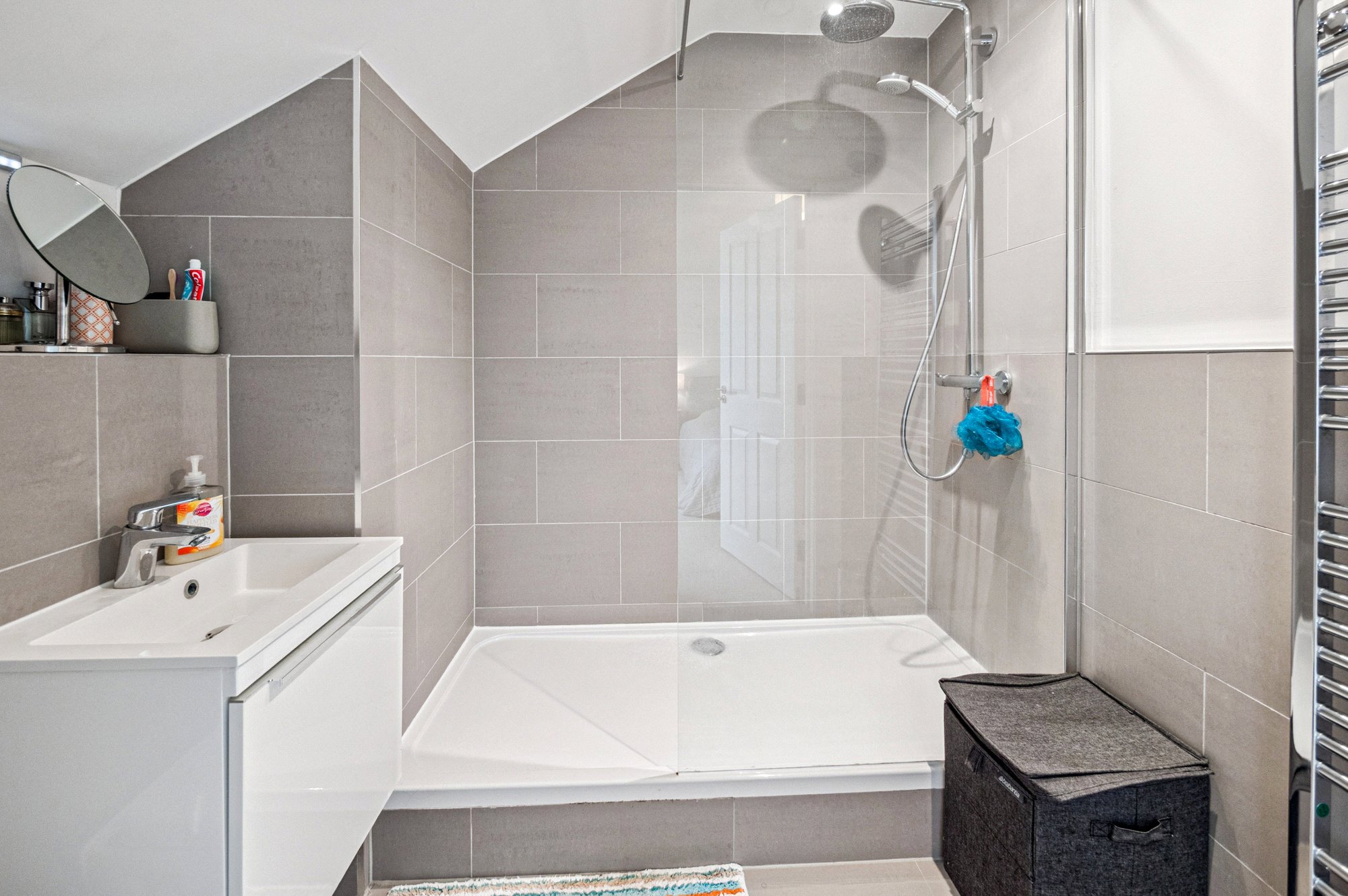First floor has three double bedrooms, the largest benefitting from a walk-in wardrobe and beautiful shared family bathroom with shower over bath. Principle bedroom covers the whole of the second floor, with tiled en-suite shower room.
