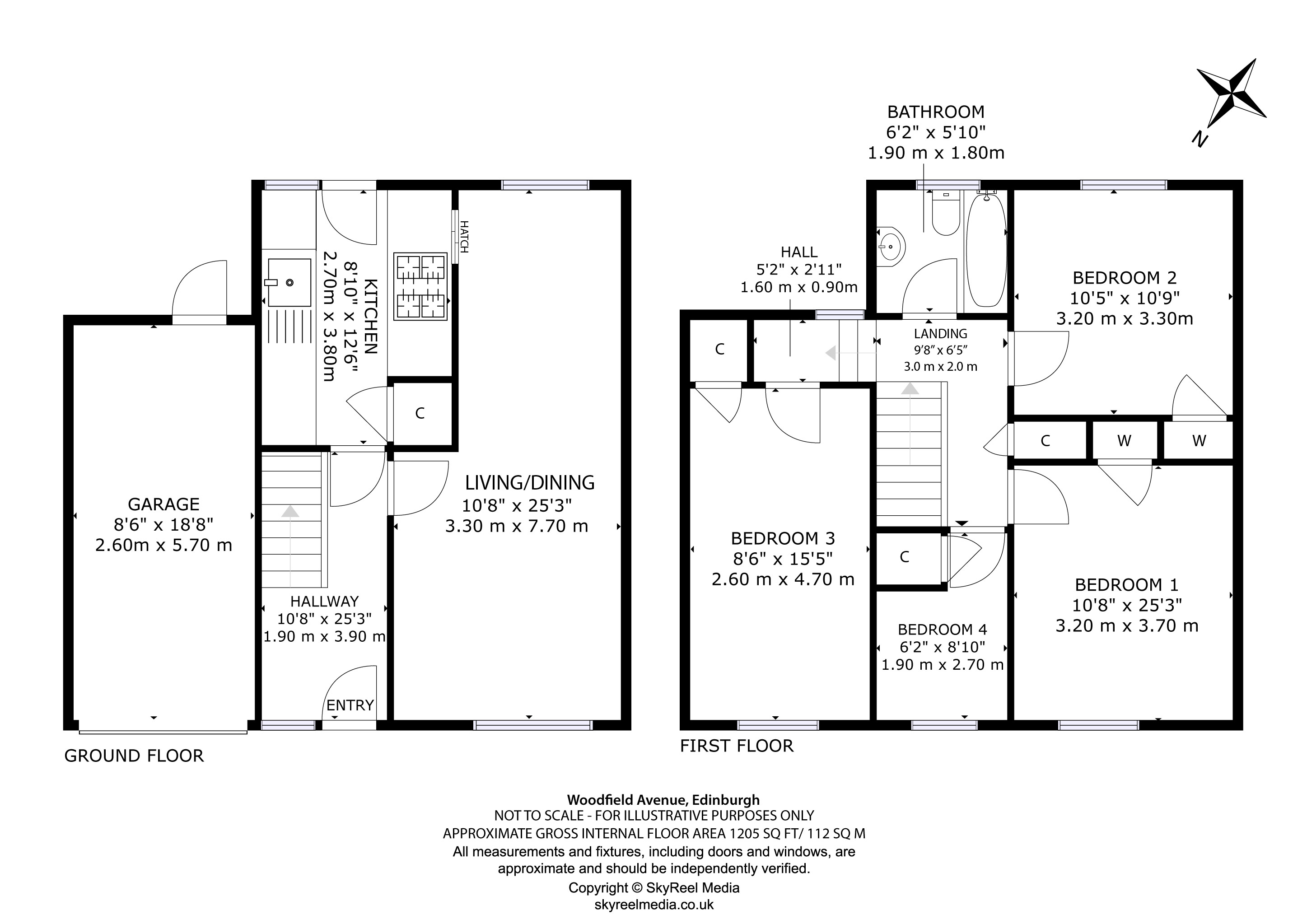 First floor – Landing; Three double bedrooms with fitted storage; Single bedroom; Bathroom with shower above bath.