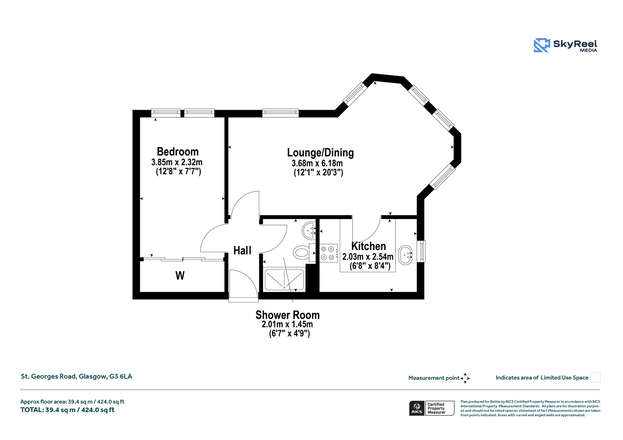 The property comprises of; welcoming entrance hallway leading to all apartments. Taking advantage of its corner-aspect position, the bright and spacious living room has multiple windows, ample space and added on dining area. Set off the lounge, the kitchen includes fitted units, stone-effect worktops, a sink with drainer, a tiled surround, washing machine, fridge/freezer, and an integrated electric oven and ceramic hob. The double sized bedroom features built-in wardrobe with mirrored doors. Set internally off the hall, the shower room has a two-piece suite and an integrated cubicle with tiled splashwalls.
