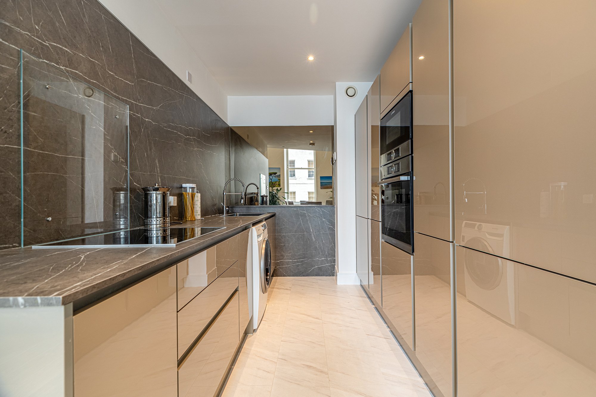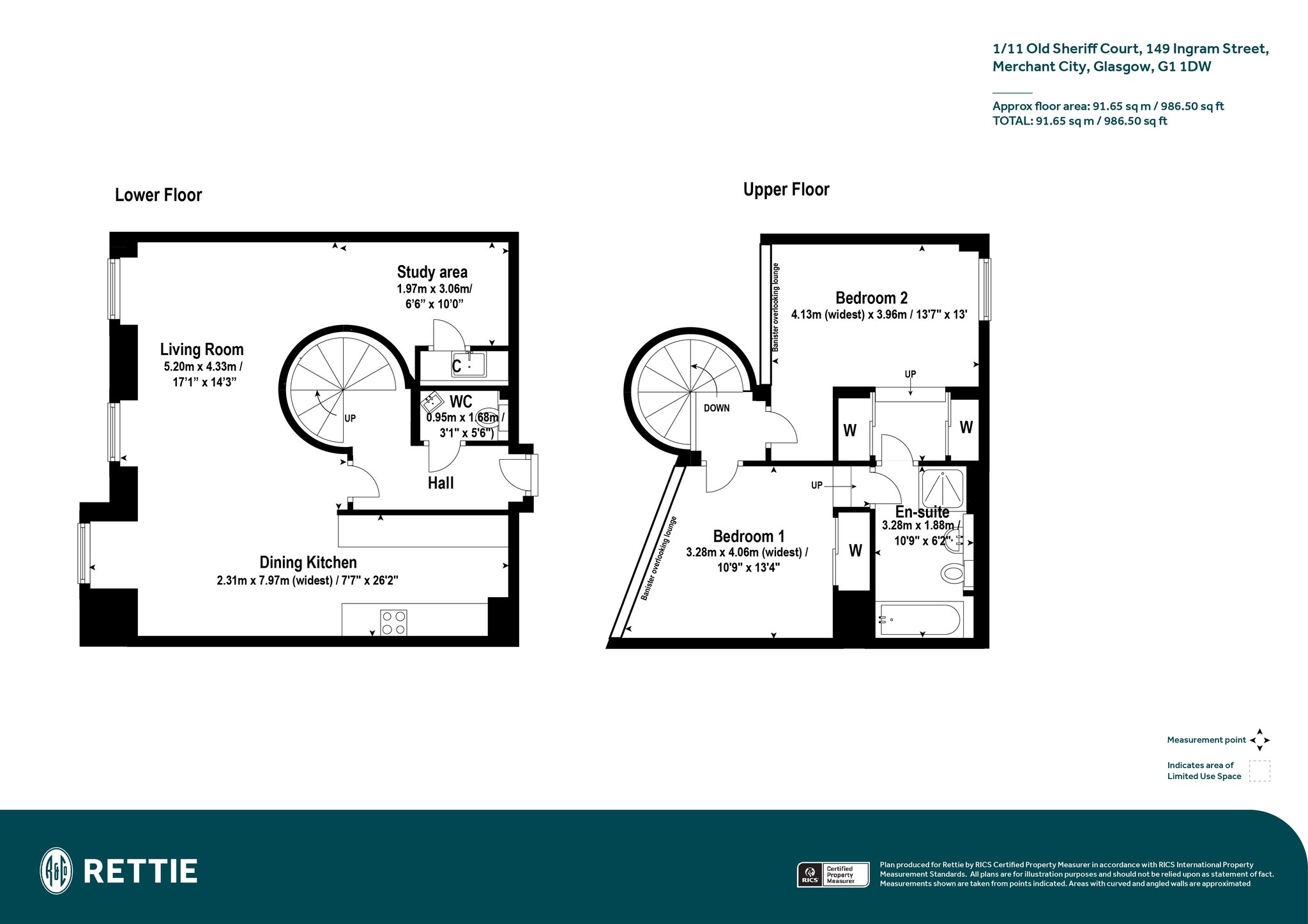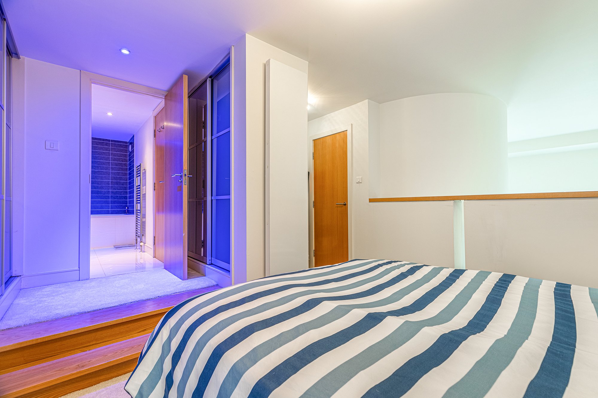 The property is accessed via security entry system; impressive communal entrance hall with concierge and staircase and lift access to each floor. Accommodation comprises welcoming reception hall with ample storage, leading to a fabulous main living/dining room with views overlooking Ingram Street. A modern open plan fitted kitchen is set back from the living space and further private study/office area set behind the curved wall of the spiral staircase. From the reception hallway a spiral staircase leads to upper landing offering access to both mezzanine bedrooms; the master bedroom has fitted wardrobes and is connected to bedroom two via a Jack & Jill style bathroom. The property benefits from a communal gas central heating system, the cost of which is included within the monthly rental cost. Other benefits include; a concierge, two residents’ roof gardens and residents’ gym room.