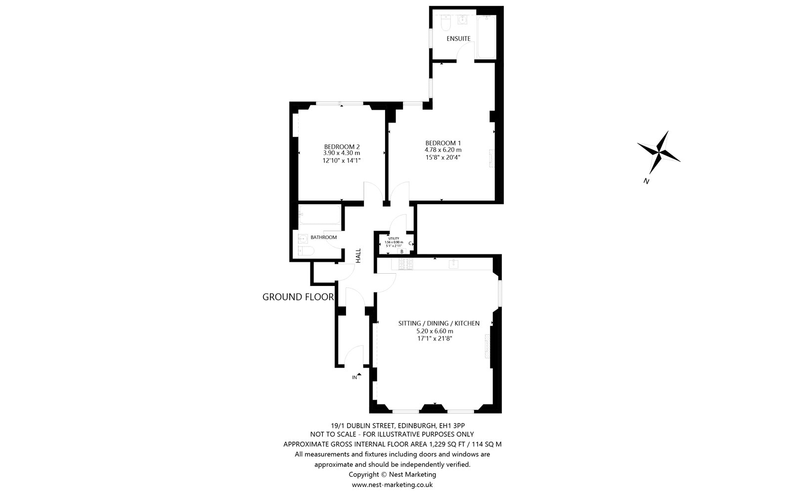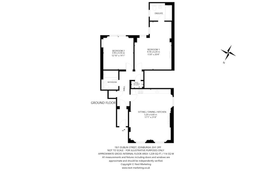 This beautifully presented ground floor apartment forms part of an elegant Georgian building in Edinburgh’s historic New Town. Spacious, bright and finished to a high standard, it blends modern comfort with classic period charm including high ceilings, ornate cornicing, large sash-and-case windows, hardwood flooring, feature fireplaces and stylish tiled bathrooms. Although situated on the ground floor, the apartment sits set back and elevated above a basement level, providing excellent privacy and natural light. A well maintained communal hallway with secure entry system offers an inviting welcome.