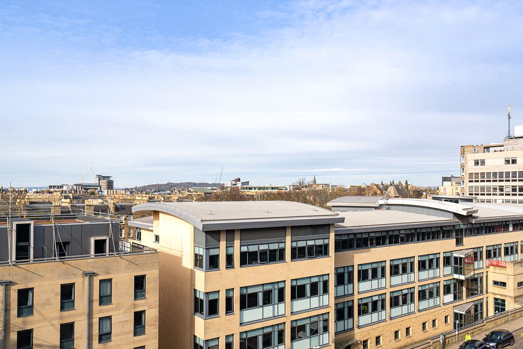 The accommodation comprises; entrance hallway leading into the open plan kitchen/living and dining area with dual aspect windows with views across the city including the Pentlands and part of Edinburgh Castle, master bedroom with built-in-wardrobes and modern family bathroom.
