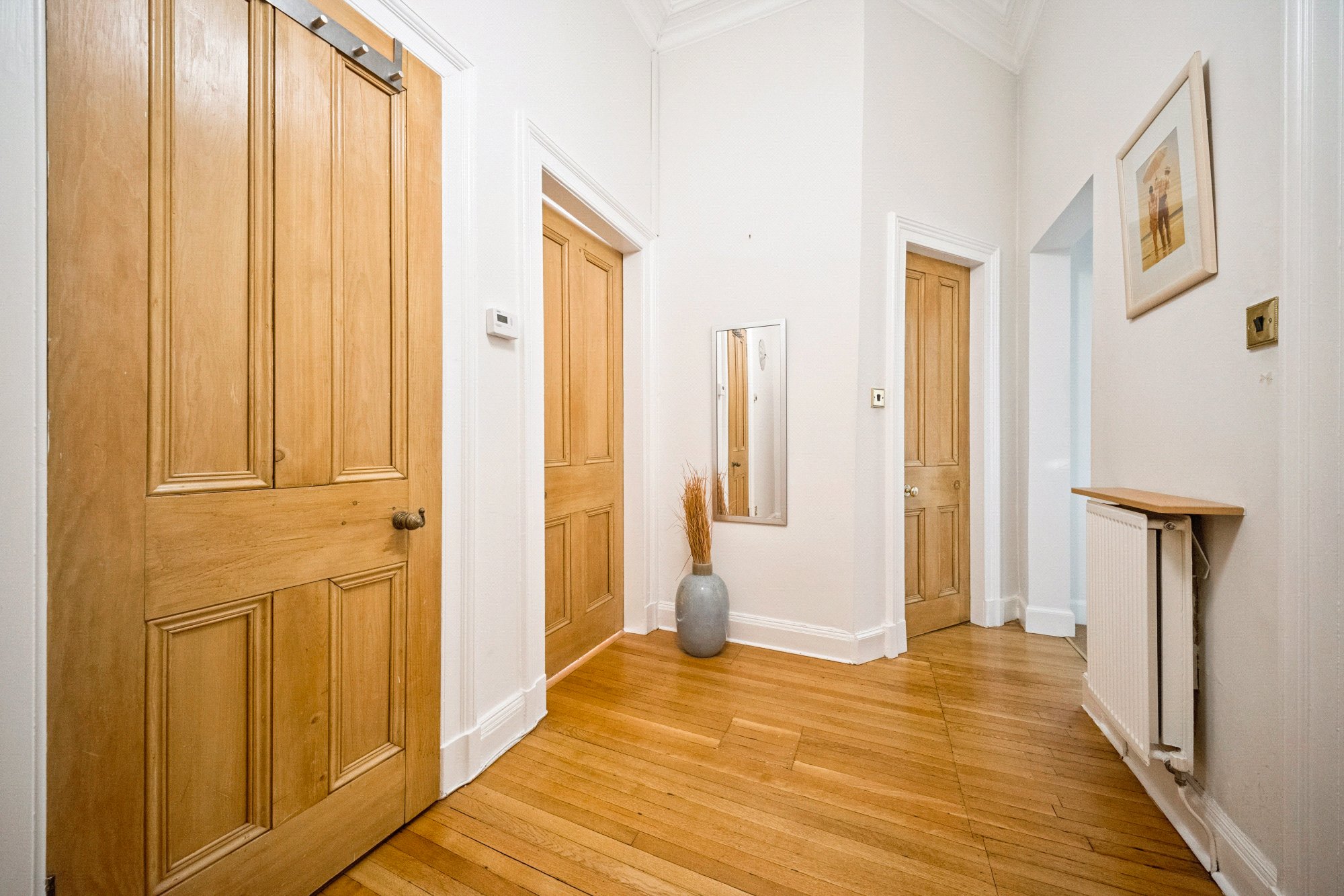 Additional benefits to this property are sanded wooden floors, a secure entry system, gas central heating, large hall storage cupboard and permit parking.