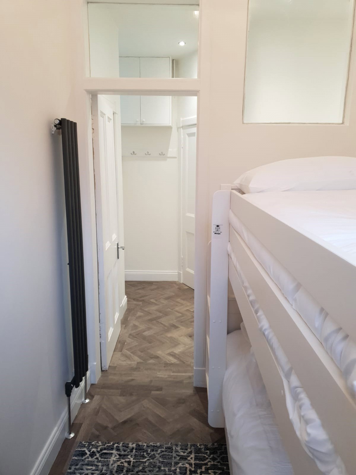 The accomodation comprises: hallway which leads to the two bedrooms, one a double and one a twin bunk. The hallway also leads to the newly renovated shower room and open plan kitchen/living room which includes a dining table and a TV.