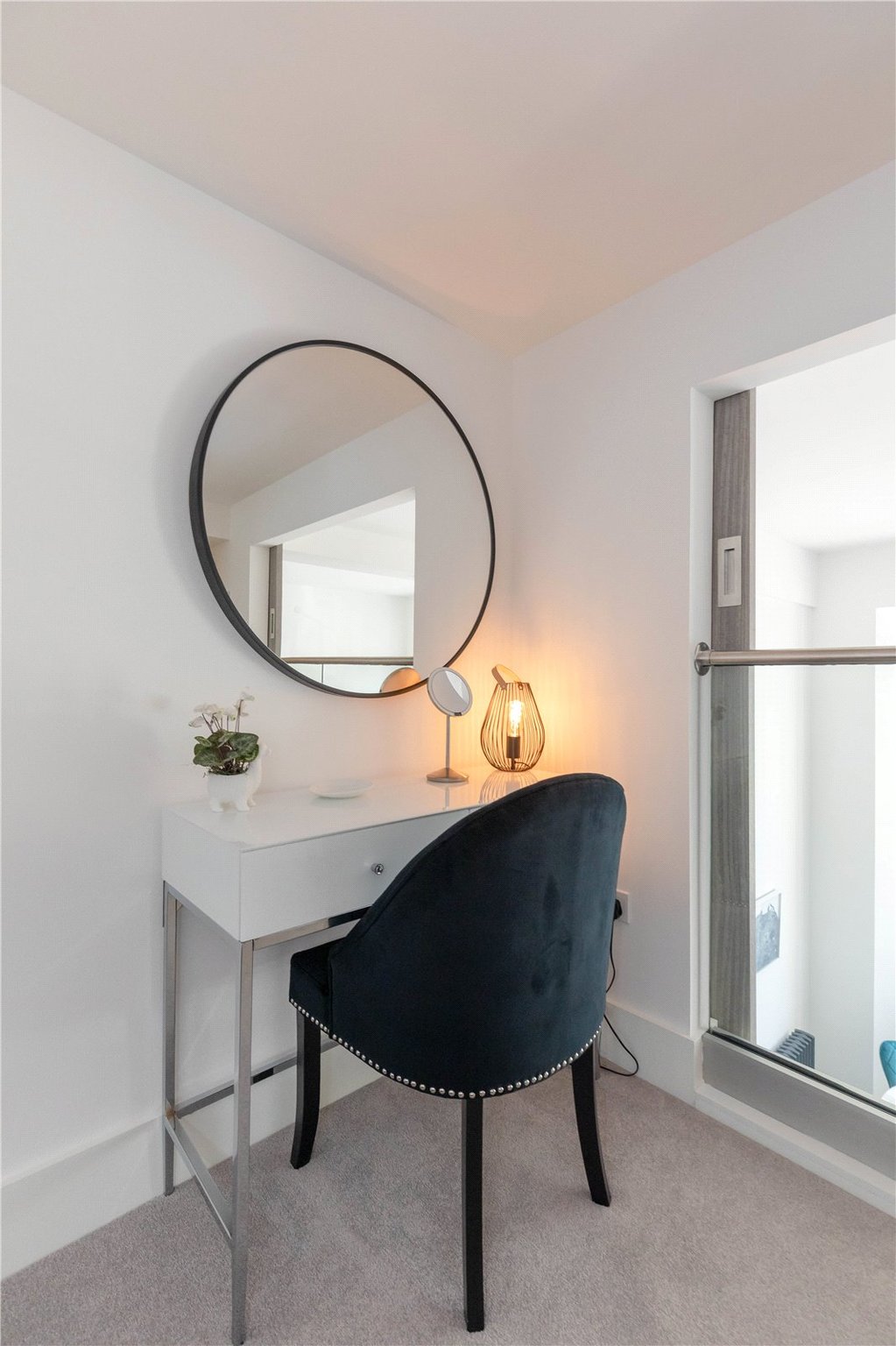 An intricate mezzanine level where the main bedroom sits, with dressing area, fitted wardrobes and en-suite shower room.