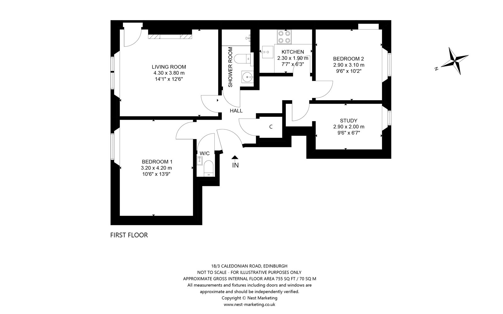 An immaculately presented first floor furnished two bedroom flat with separate study located on Caledonian Road with a variety of restaurants and shops within a short walking distance. It is also located only a short walk from Haymarket Station.