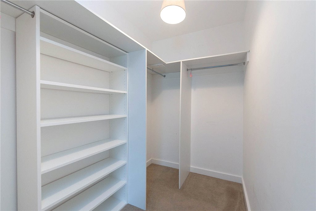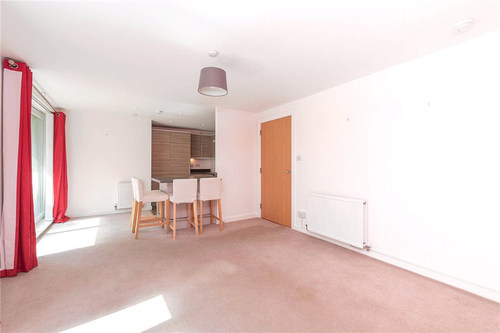 Large hallway with excellent storage; Bedroom with walk-in closet; Flexible living and dining space with south facing balcony off; Open plan fully fitted kitchen with integrated appliances and breakfast bar; Bathroom fitted with white suite comprising wc, wash hand basin and bath with shower over and screen.