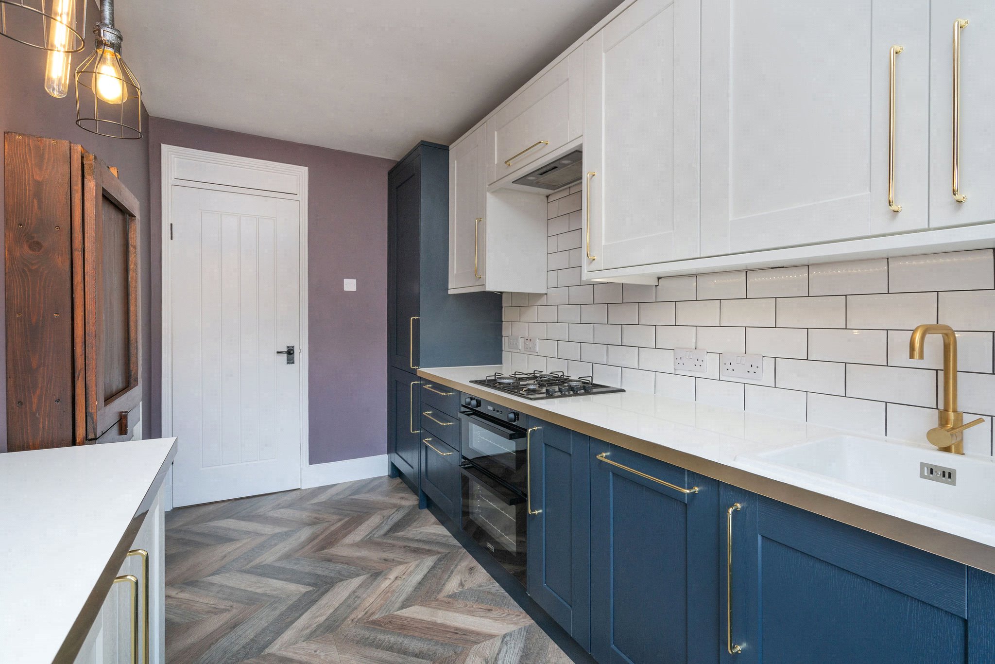 Entrance Hallway; Spacious and bright sitting room with feature brick wall; Modern fitted kitchen with ample upper and lower units and worktop space and window seat; Two double bedrooms with fitted wardrobes; Contemporary bathroom with shower above bath, sink, WC and heated towel rail.