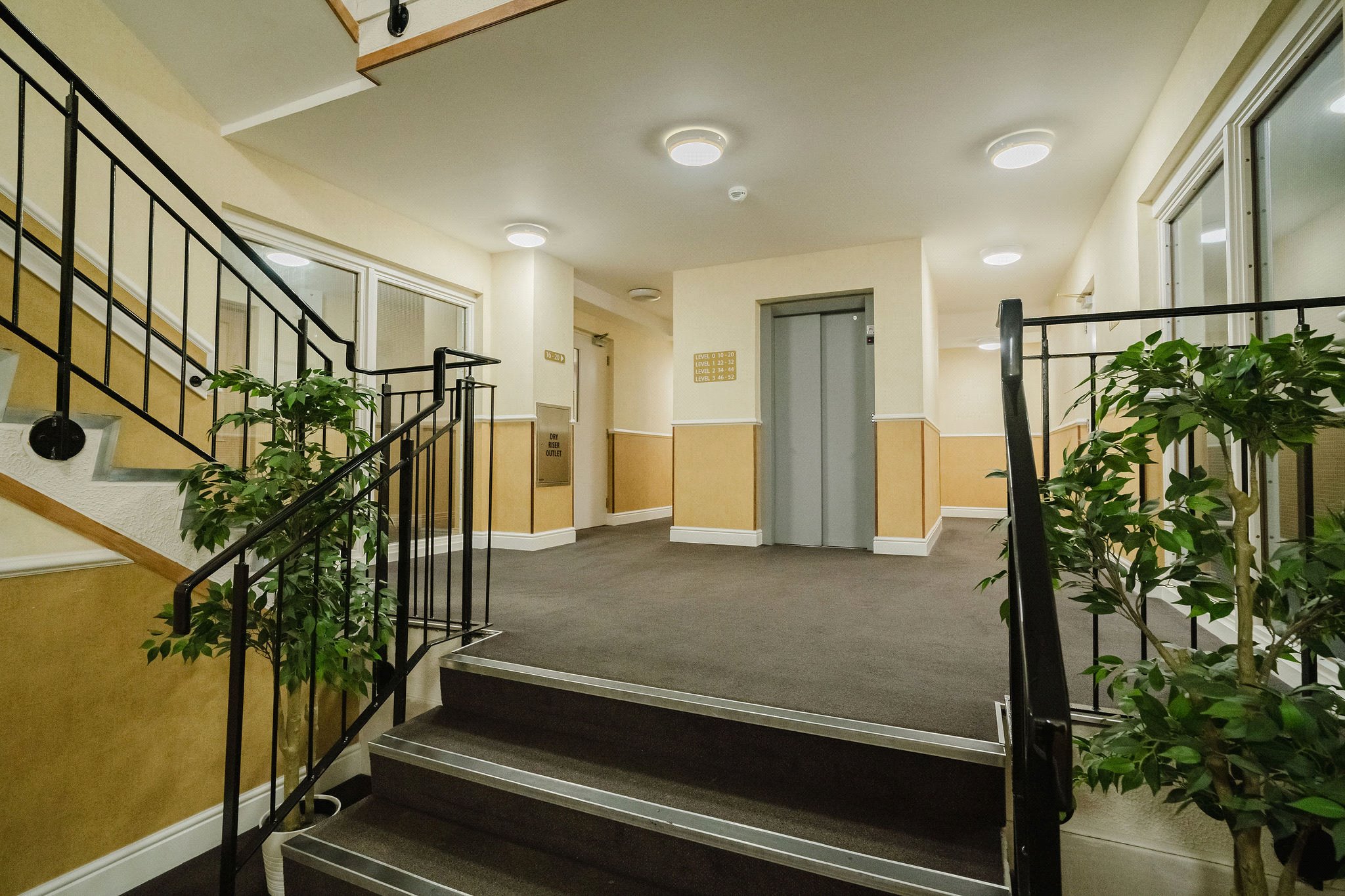 The hall has a large cupboard/boxroom and a further cupboard for storage, and the property further benefits from GCH, double glazing, a private parking space, secure entryphone system and lift access. The communal areas and gardens are very well maintained by the factors.