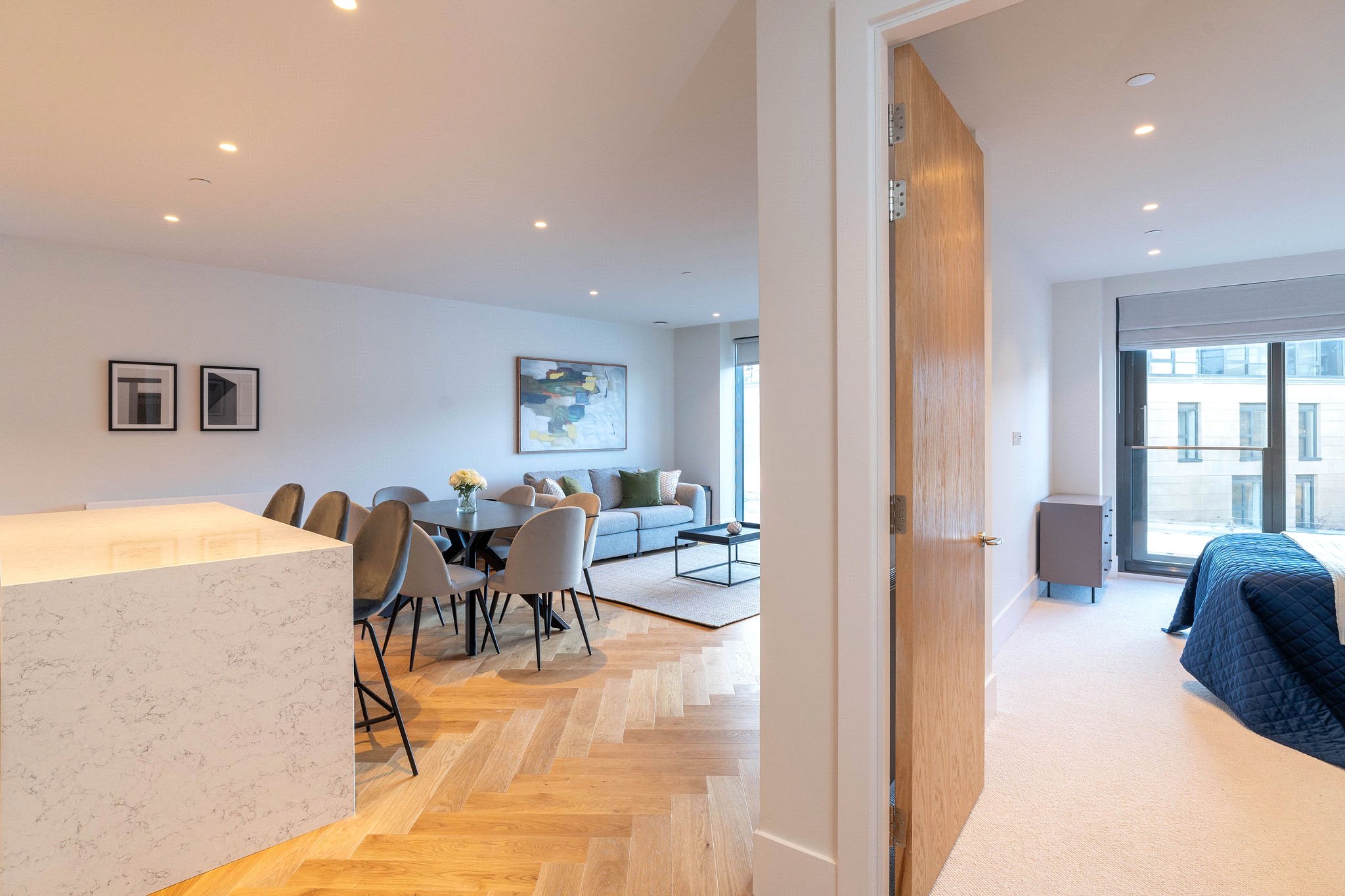 A spectacular two-bedroom apartment with private parking space, located within the exceptional St. James Quarter development.