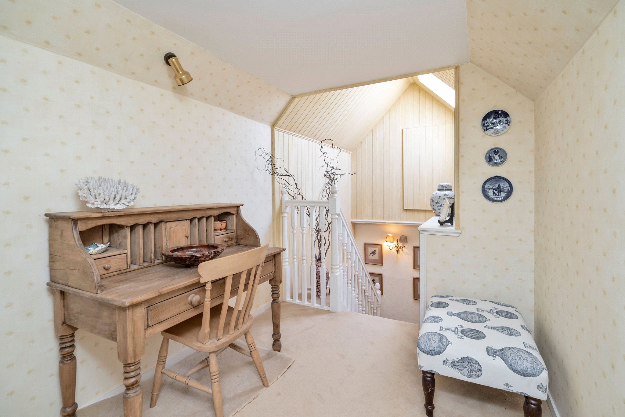 Entrance vestibule; Hall; Stunning living room with beautiful outlook; Dining kitchen; Three double bedrooms, one with en-suite shower room; Family bathroom with separate bath and shower cubicle; Utility room/WC; Study area on upper landing.