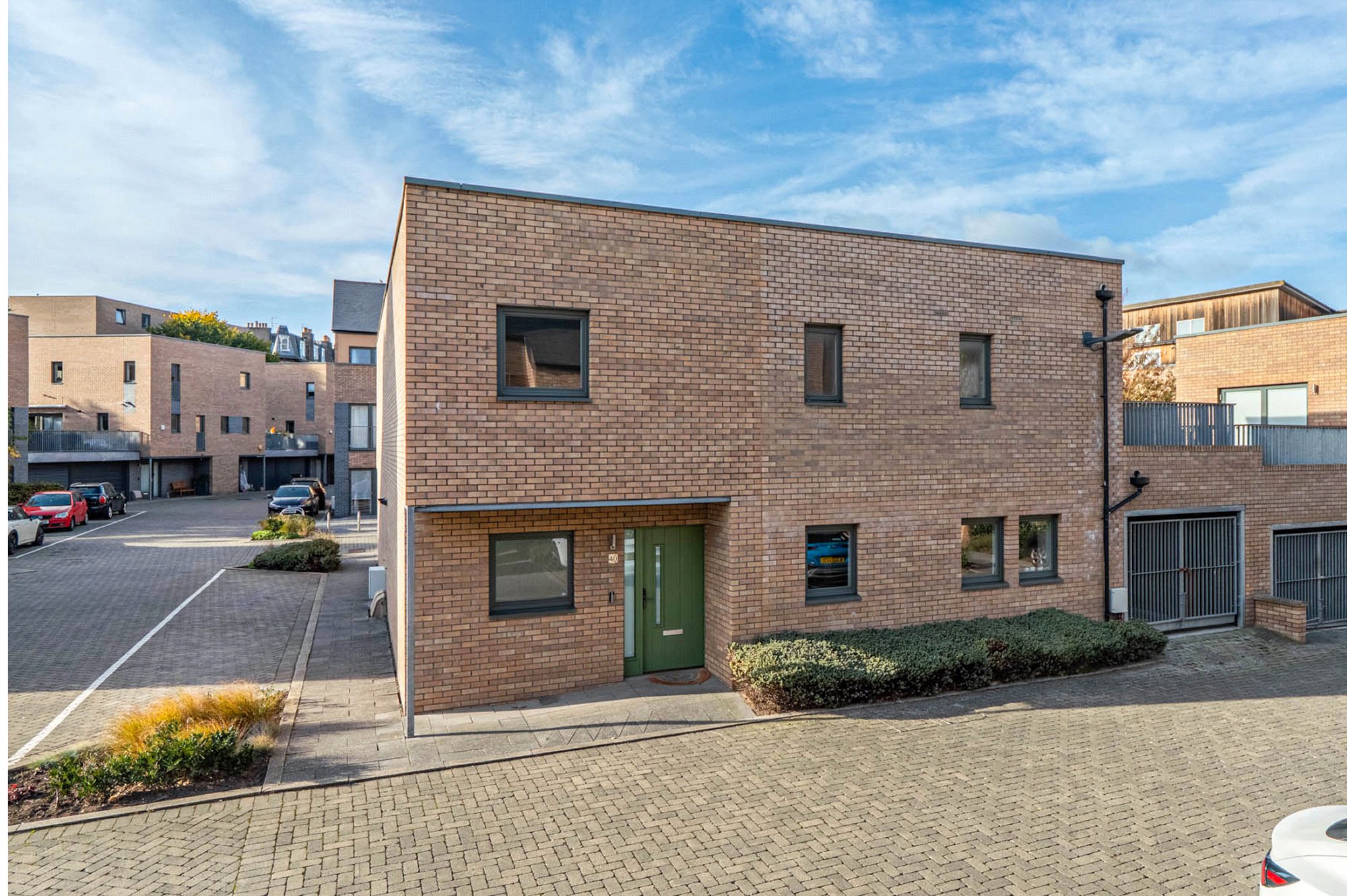 A stylish main-door, three-bedroom modern home with garden and covered parking in vibrant east Edinburgh, situated within a contemporary residential development.