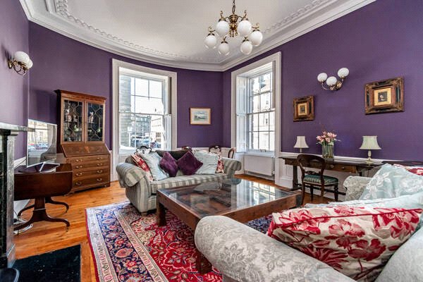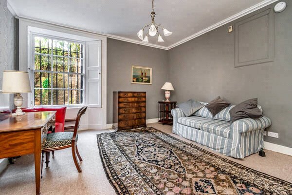 Ground Floor – Grand entrance hallway with original flagstone flooring; A beautiful drawing room brimming with natural light due to its dual aspect over Hart Street and Broughton Place from three large Georgian windows; Study; Principal bedroom with ensuite shower room; Second double bedroom; A further bathroom plus a separate WC for added convenience.
