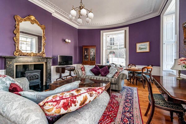 An impressive three-bedroom main door corner apartment, set over ground and lower ground levels in the heart of Edinburgh’s prestigious New Town.