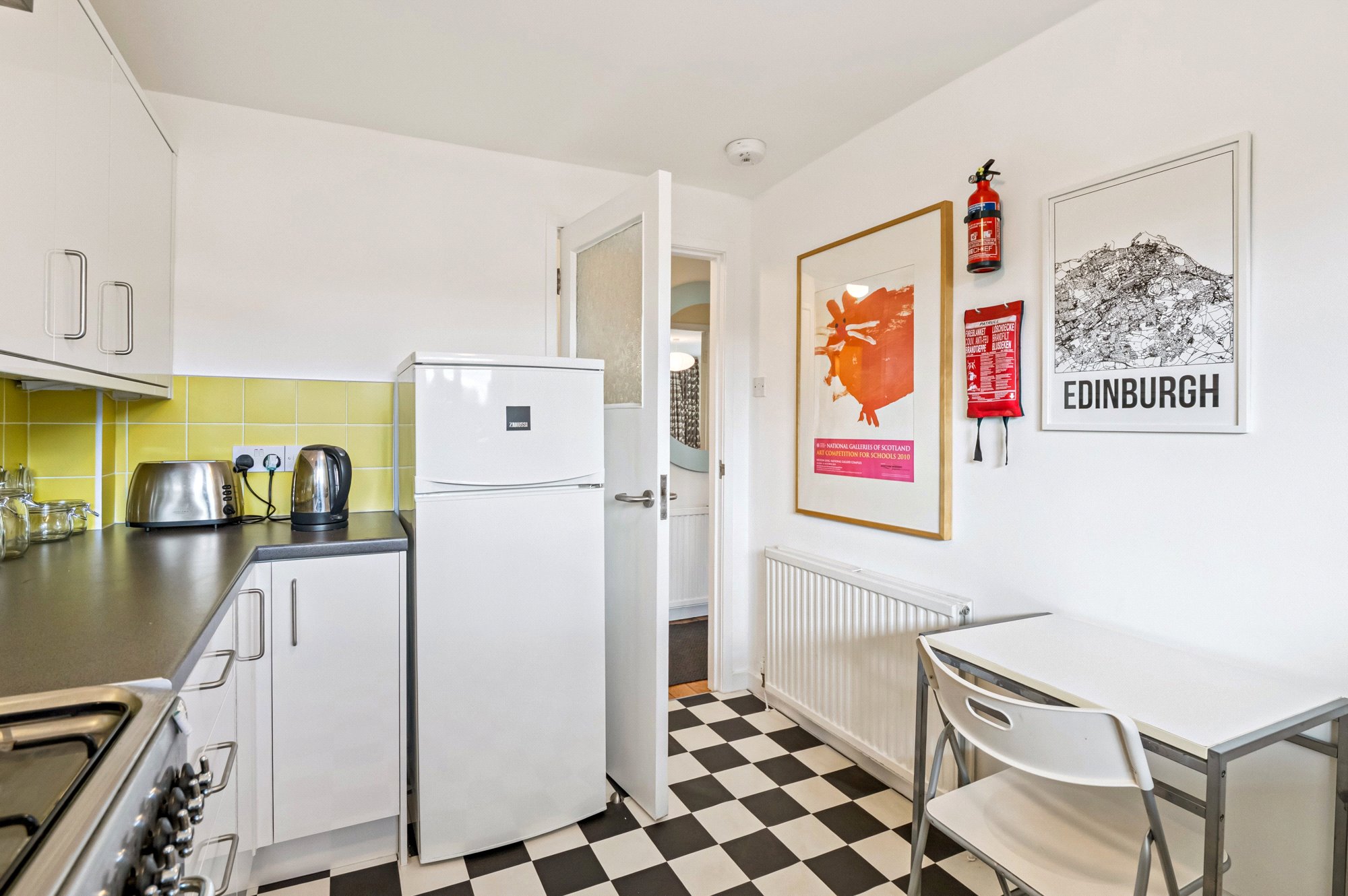 Welcoming entrance hall with two storage cupboards; Bright and generously proportioned lounge with ample space for both living and dining, and access to the private balcony, which boast lovely views to Carlton Hill and Arthur’s Seat; Sleek fitted kitchen with a good range of units and breakfast table; Two double bedrooms with fitted wardrobes, one bedroom is currently set up with twin beds; Bathroom with shower over bath.
