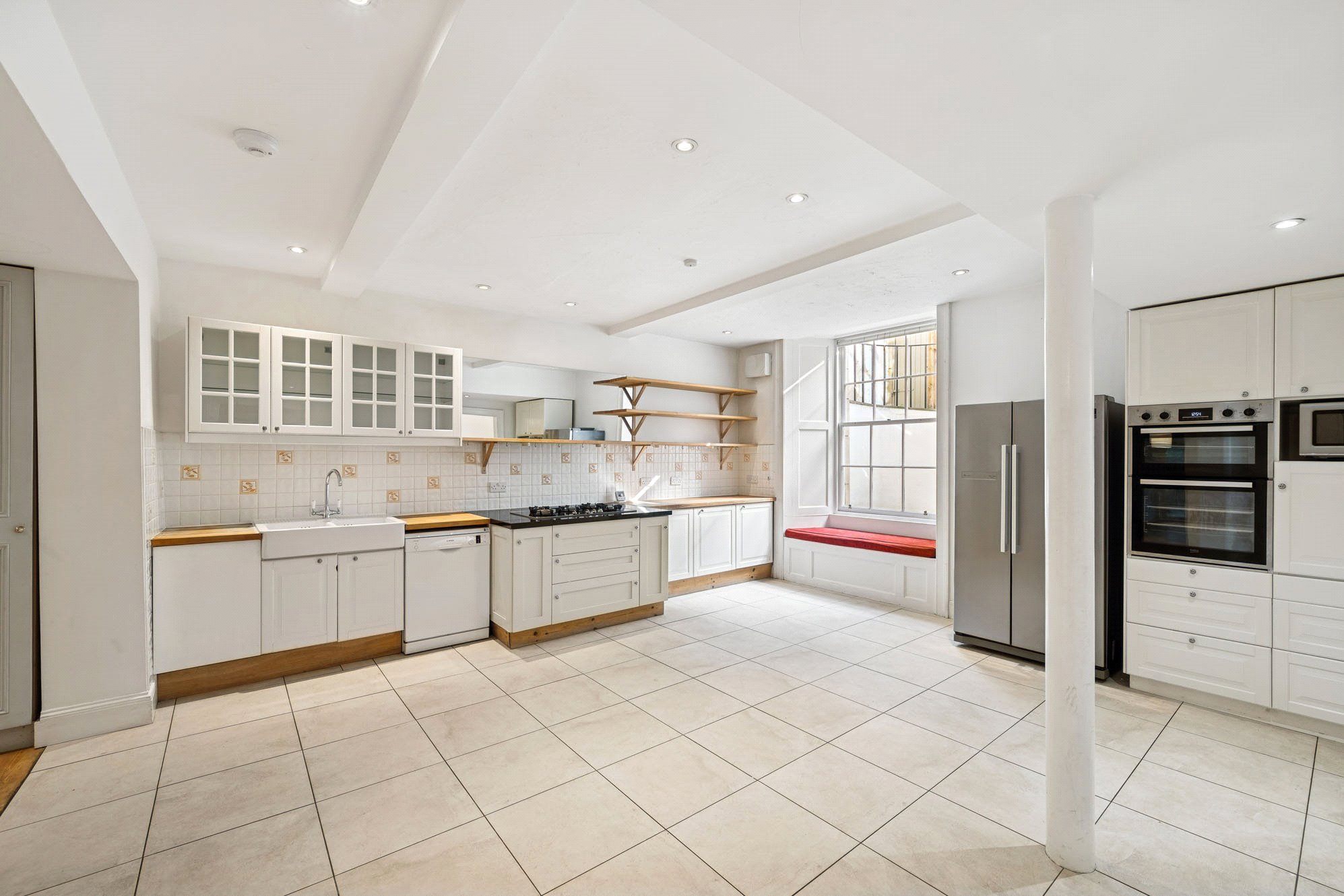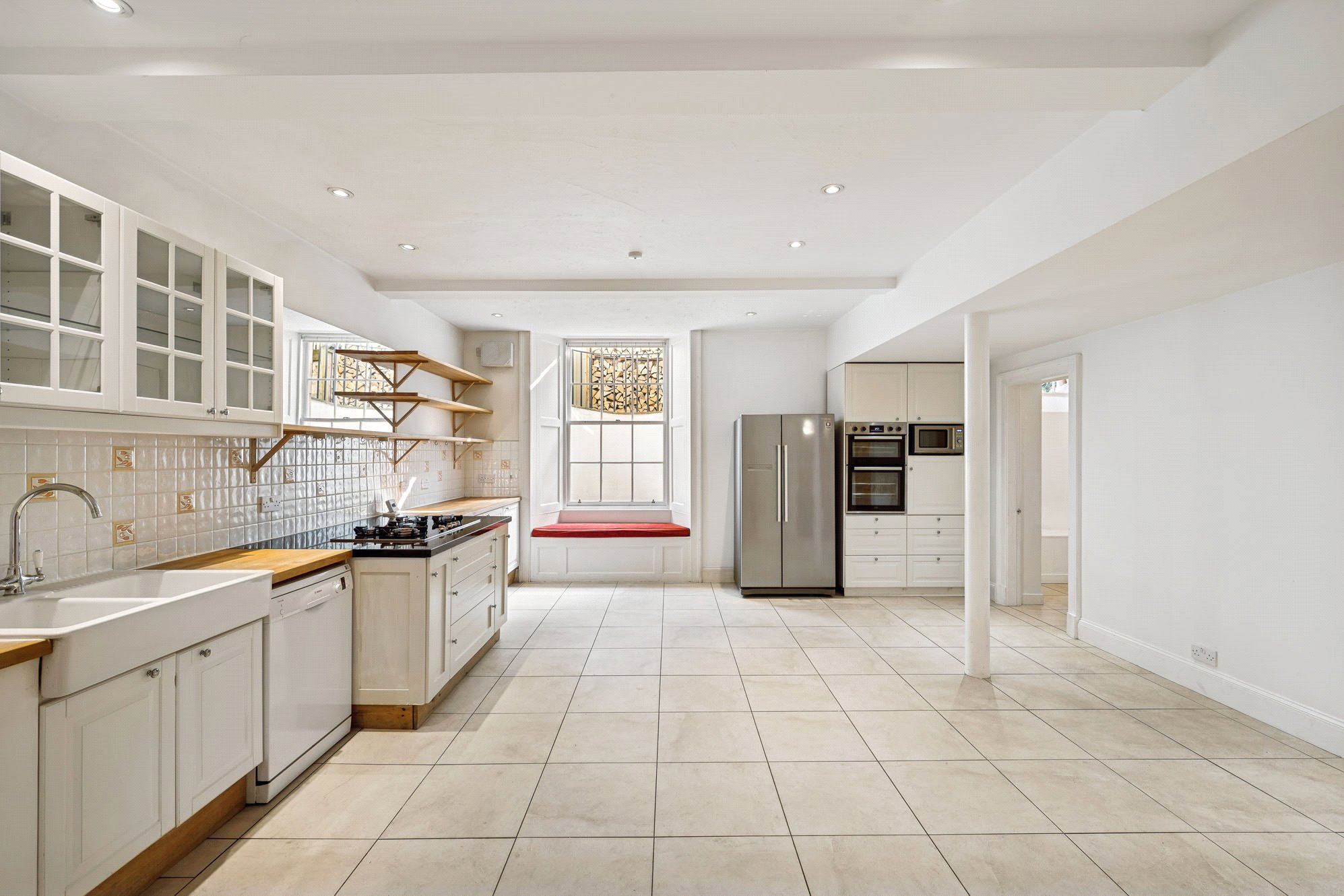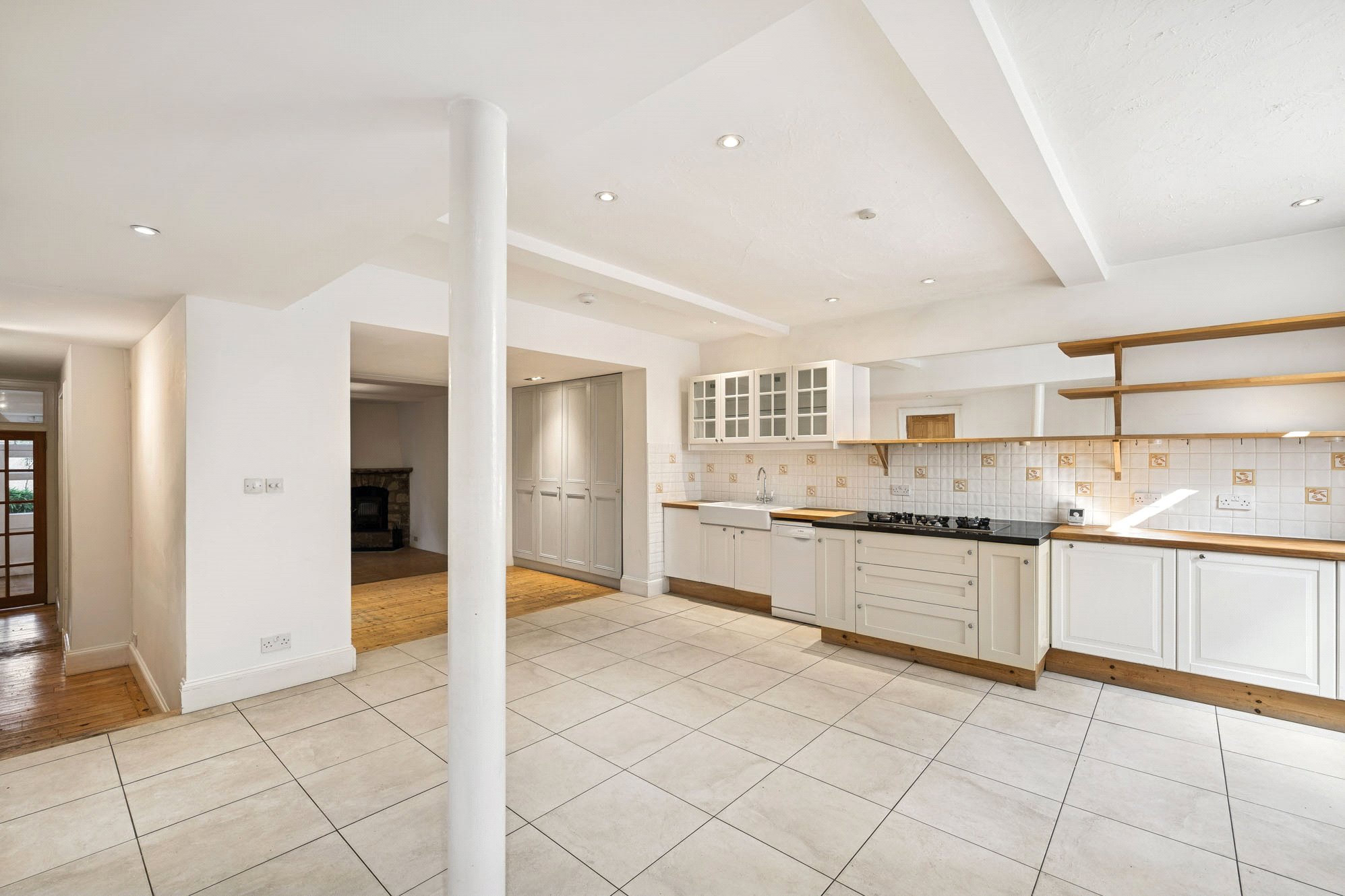 Lower Ground – Bright and expansive kitchen/dining room fitted with ample storage, appliances and a large American-style fridge-freezer; Adjoining pantry leading through to the living room, with wood burning stove and doors leading out to the private garden; Bedroom 5/study; Utility room; Shower room; Store.