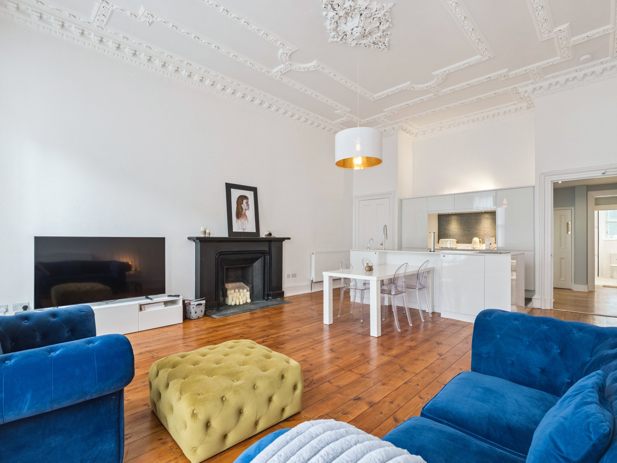 Located on the elegant Palmerston Place in Edinburgh’s sought-after West End, this bright and well-appointed 2-bedroom flat offers comfortable and stylish living in a prime location — available to let on a furnished basis.
