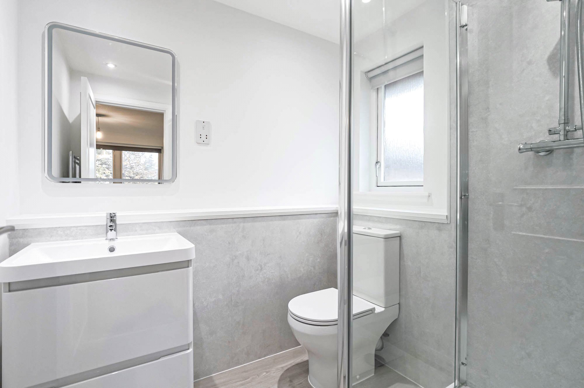 There are three well-proportioned bedrooms, including a principal bedroom with an en-suite shower room. The main bathroom is stylishly finished and features a full-sized bath.
