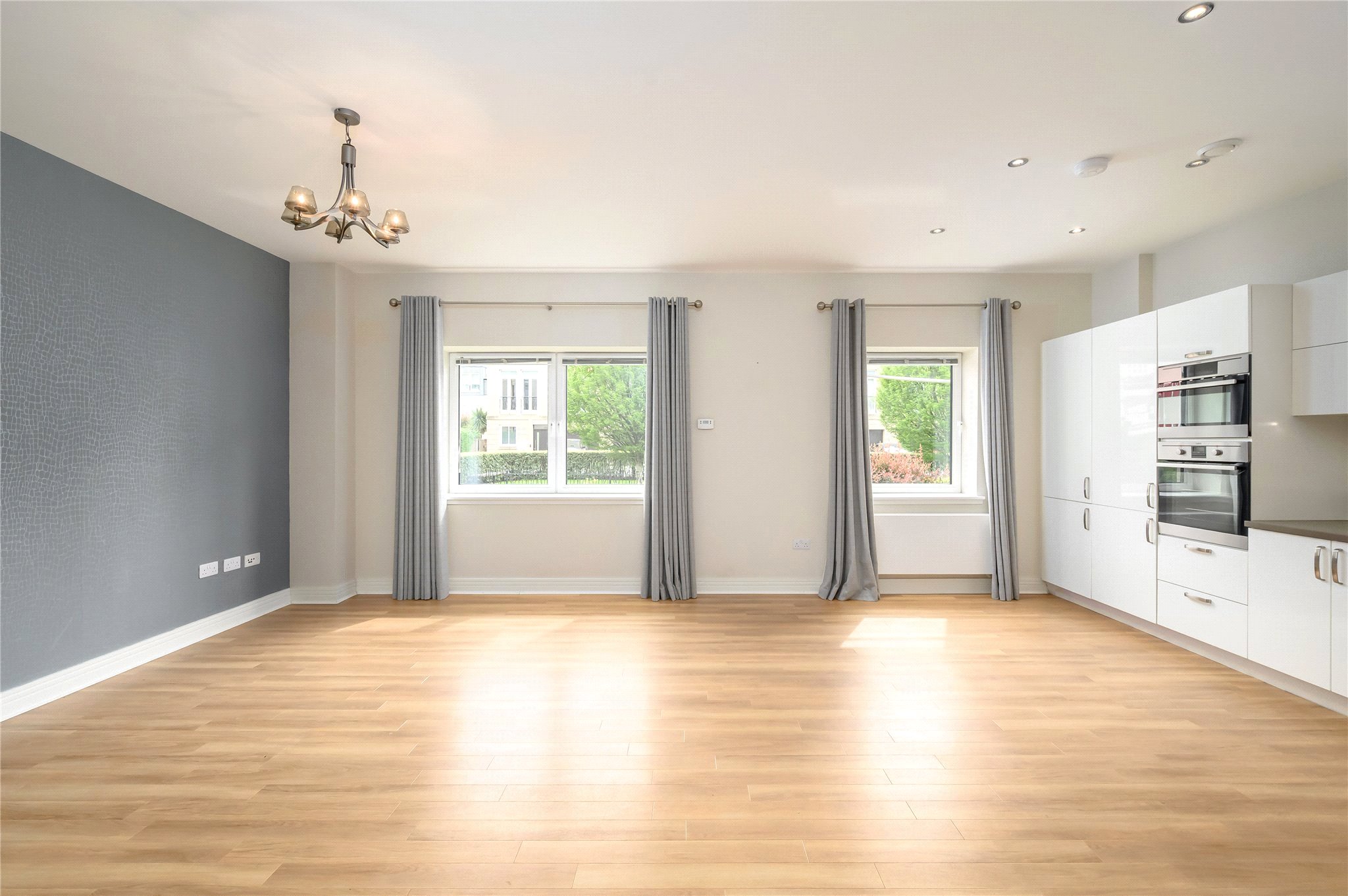 Generous central hallway with excellent storage; Stylish open-plan sitting room with dining area and kitchen, spanning the full width of the property and benefitting from large south-facing windows that flood the room with natural light; Principal bedroom with en-suite shower room and built-in wardrobe space; Second bedroom with built-in wardrobes; Modern family bathroom.