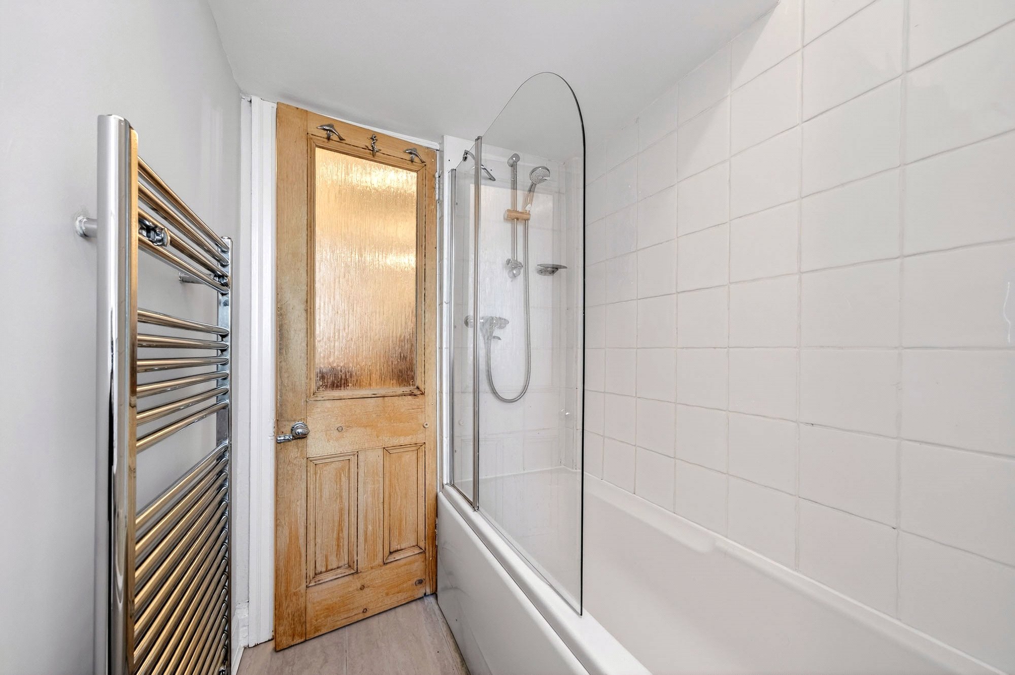 Welcoming hallway; Impressive bay-windowed living room, featuring high ceilings, period cornicing and a decorative fireplace (non-operational); Spacious dining kitchen, offering ample cupboard and worktop space, white goods included, and sufficient room for a dining table; Two well-proportioned double bedrooms; Versatile box room which is ideal for a home office, study or additional storage; Bathroom with shower above bath, sink, WC and heated towel rail.