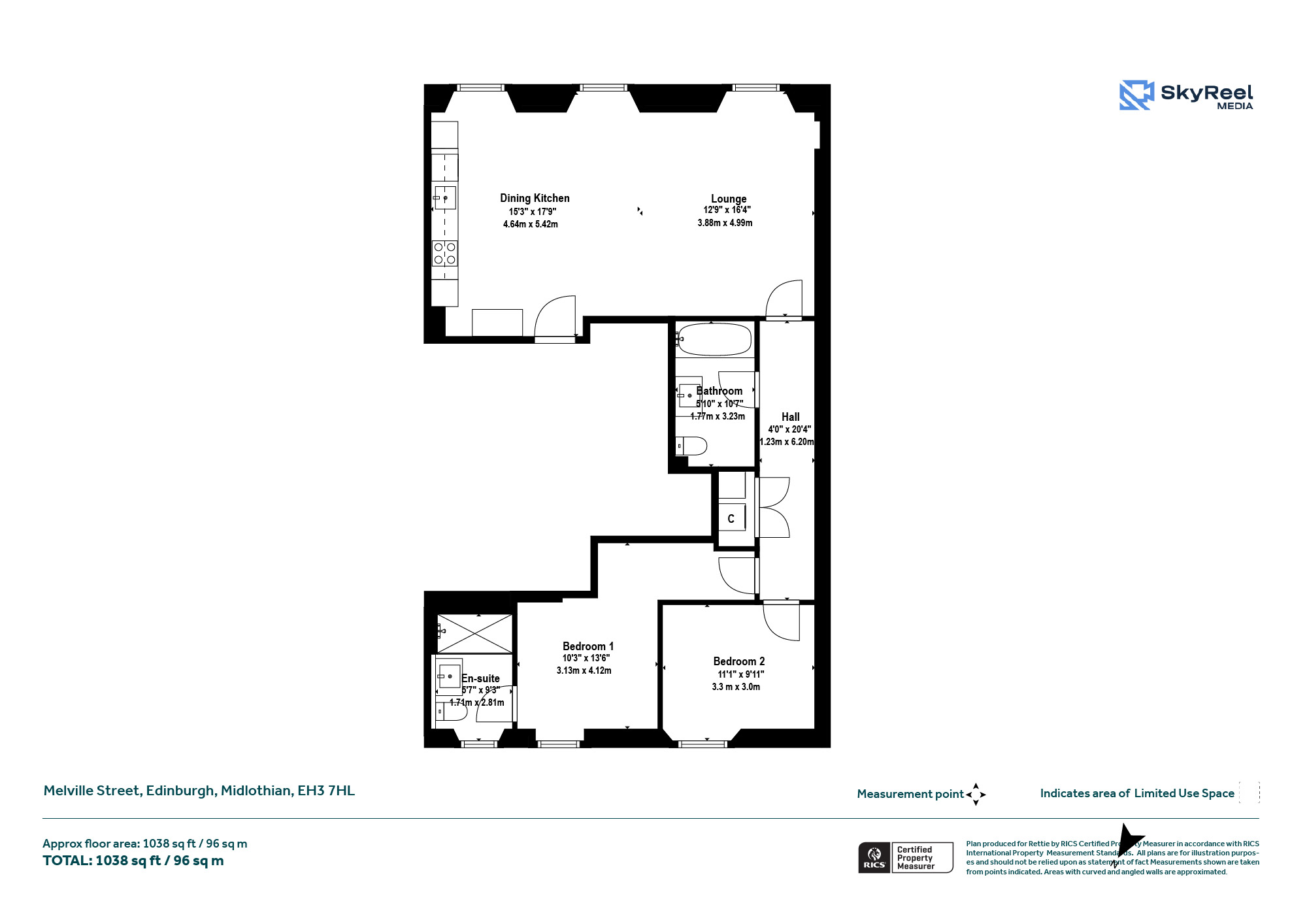 A spacious and elegant open-plan living/dining/kitchen area, ideal for both relaxed day-to-day living and entertaining, with three large windows overlooking Melville Street and boasting views to Edinburgh Castle; Principal bedroom with modern en-suite shower room; Second smaller double bedroom; Bathroom with shower above bath, sink, WC and heated towel rail.