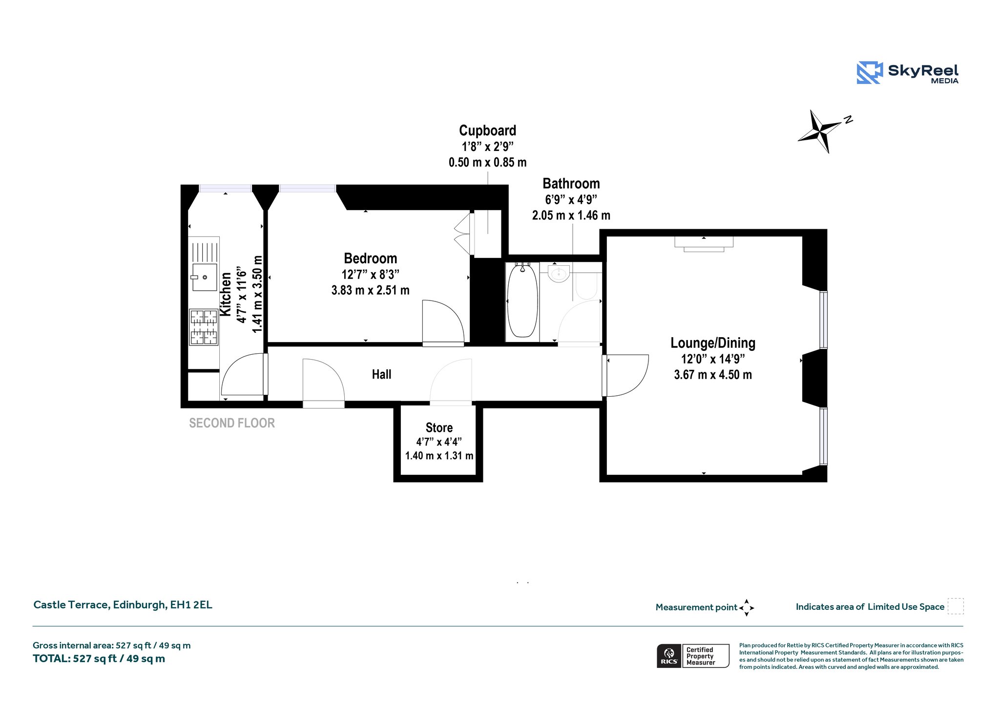 The bright and spacious lounge/dining area provides a welcoming space to relax or entertain, while large windows frame truly stunning views of Edinburgh Castle, a rare and impressive feature that adds real character to the home. The well equipped kitchen is separate and practical, offering ample storage and workspace.
