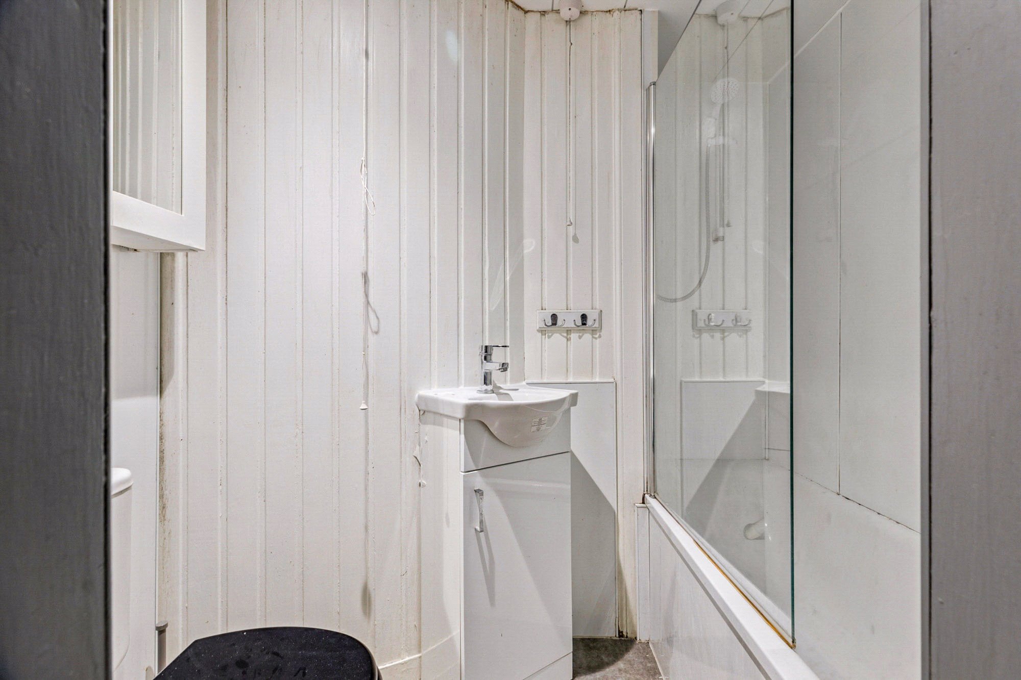 Welcoming entrance hallway with two large storage cupboards; Spacious living room with gas fire and twin windows, allowing plenty of natural light in to the room; A generous principal bedroom; Single bedroom/study accessed off the living room; Modern fitted kitchen with space for dining; Bathroom with shower above bath.