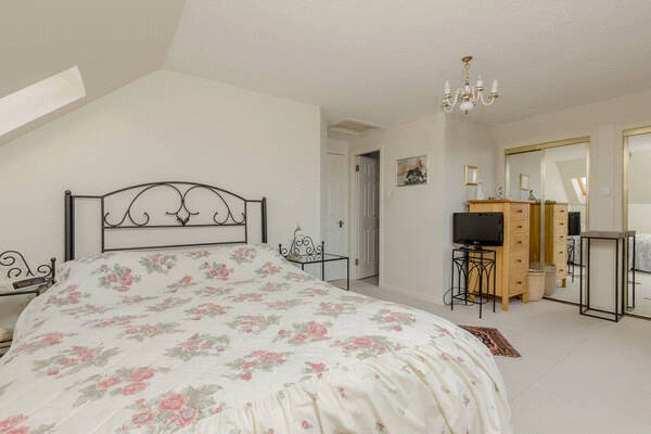 Upstairs, the principal bedroom suite is a standout feature – a luxurious and serene space with extensive built-in storage, a spacious ensuite bathroom with both bath and separate shower, and its own private south-facing balcony. This tranquil outdoor retreat is a true rarity in city living, offering views to the iconic Arthur’s Seat and plenty of space for seating, planters, and morning coffee. A further double bedroom and excellent built-in storage, including floored attic space, offers ample storage and spacious living.