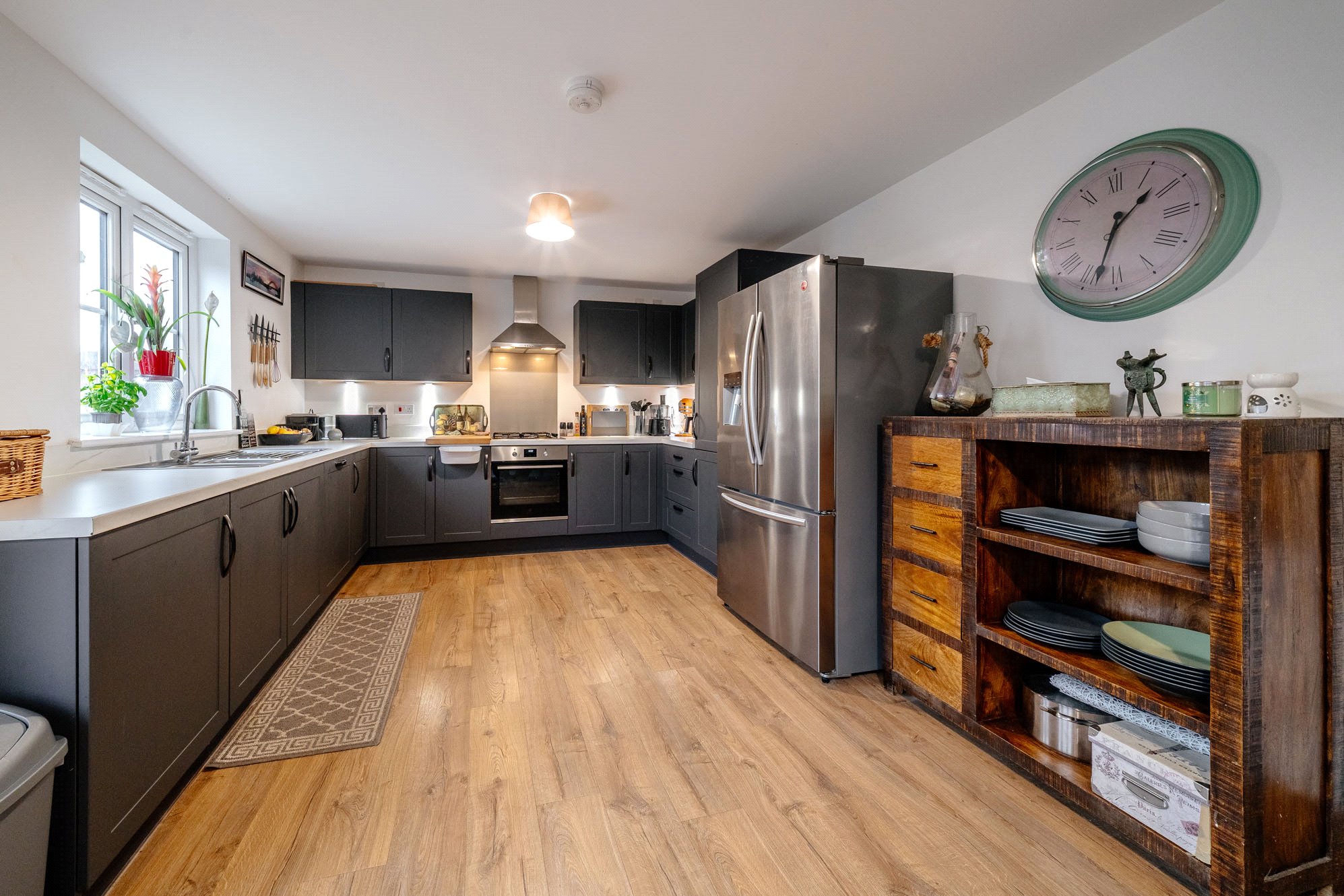 Ground floor – Welcoming entrance hallway; Generous living room, situated to the front of the property; Bright open-plan kitchen and dining area, where French doors allow light to flood in and provide direct access to the private garden; Practical utility room located off the kitchen, leading through to a convenient downstairs WC; Stairs to first floor.