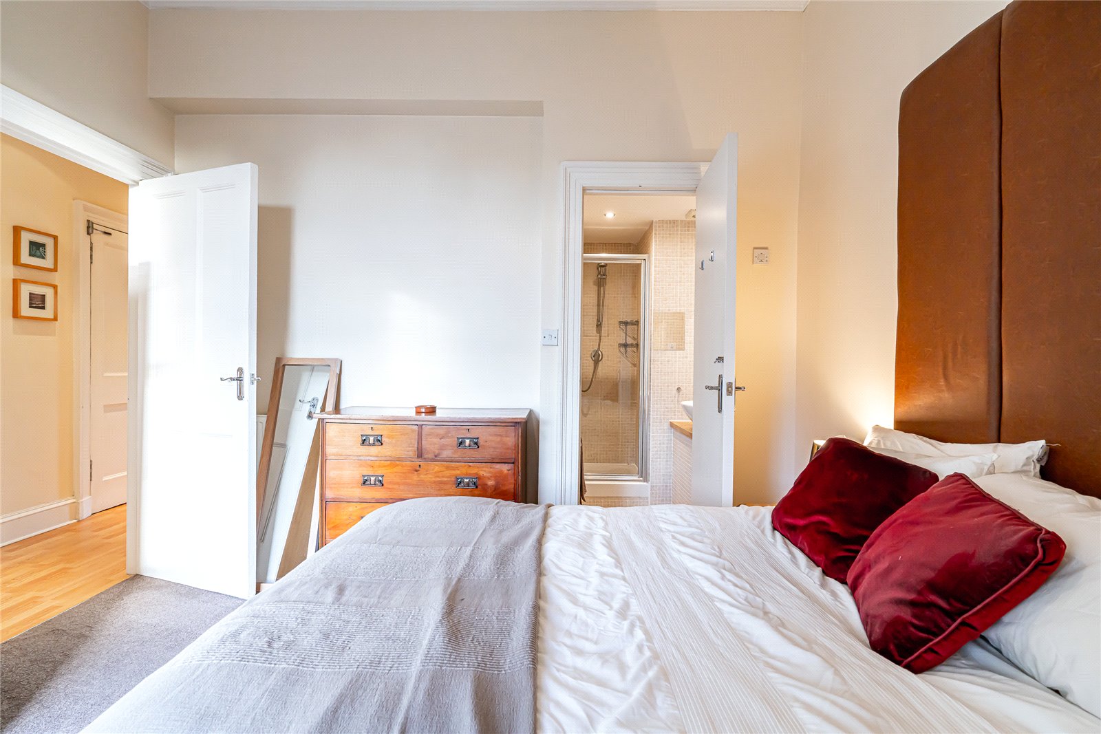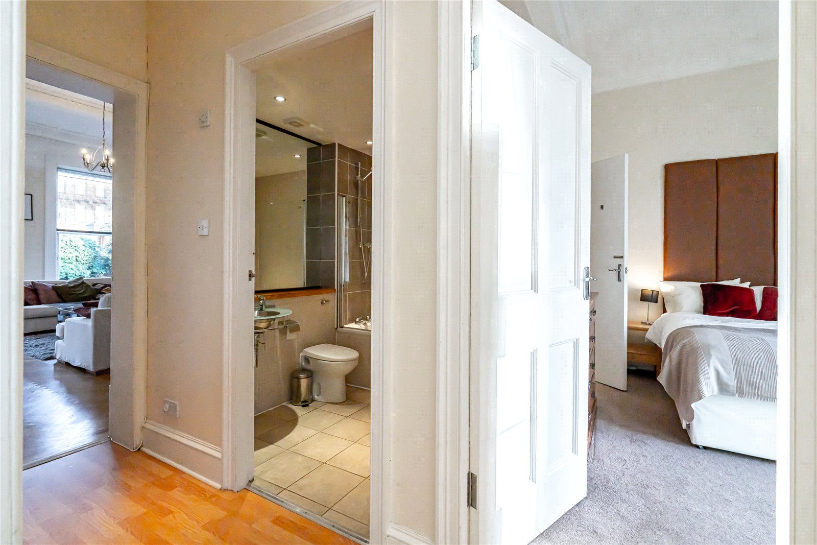 The property comprises two double bedrooms, master with en-suite, bright and spacious front facing dining lounge which overlooks the residents garden, fully fitted kitchen with integrated appliances and family bathroom with shower. The property is heated by gas central heating and further benefits include secure door entry system and access to private residents garden. Many original features remain including stunning ornate decorative plasterwork, decorative marble fireplace and wooden parquet flooring.