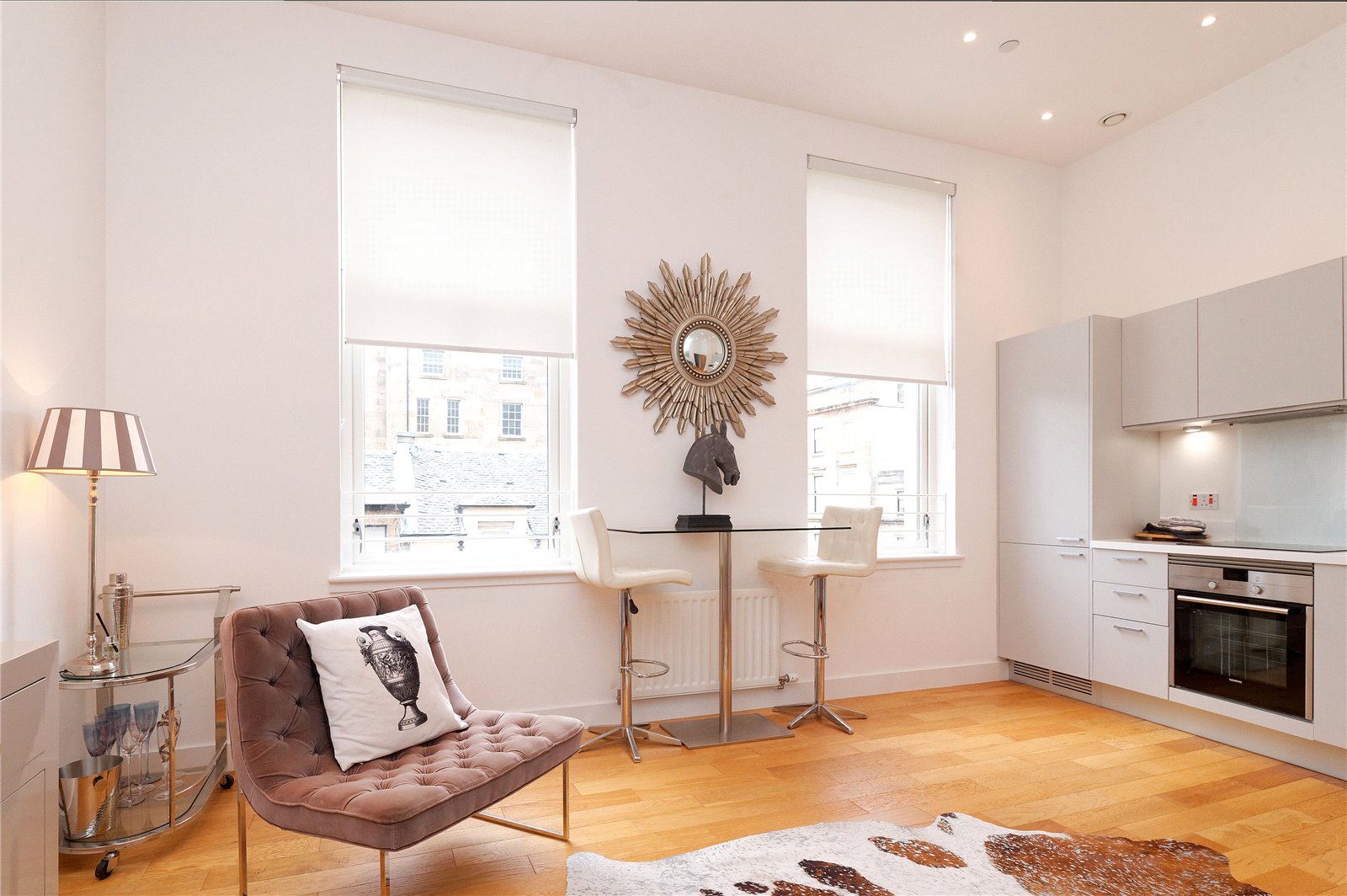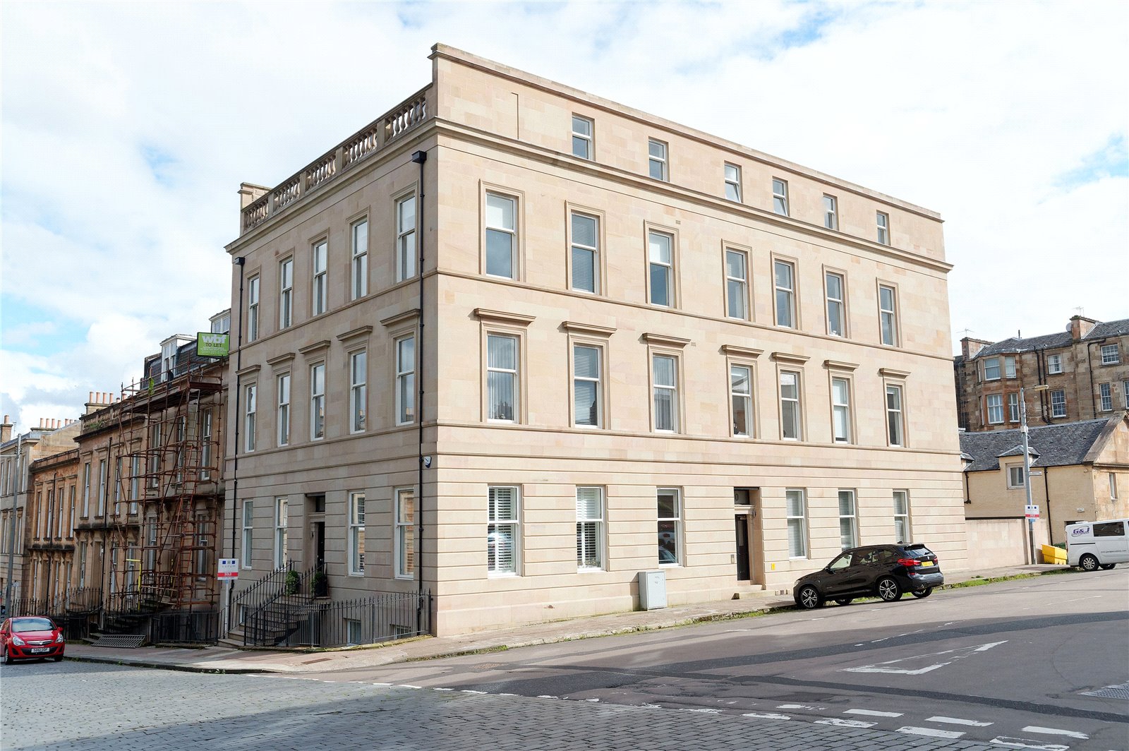 This two-bedroom luxury apartment forms part of an innovative modern development and occupies a preferred first floor position overlooking lovely tended residents pleasure gardens. Located in the highly desirable and incredibly convenient Park district this striking building was completed in mid-2016 by Wemyss Properties and is close to countless local amenities including Kelvingrove Park. The interior is finished to an exacting standard and extends to a bright main living/dining room, a fully fitted open plan kitchen; two double bedrooms with fitted wardrobes, particularly stylish three-piece bathroom. High ceilings throughout enhance the light open spaces.