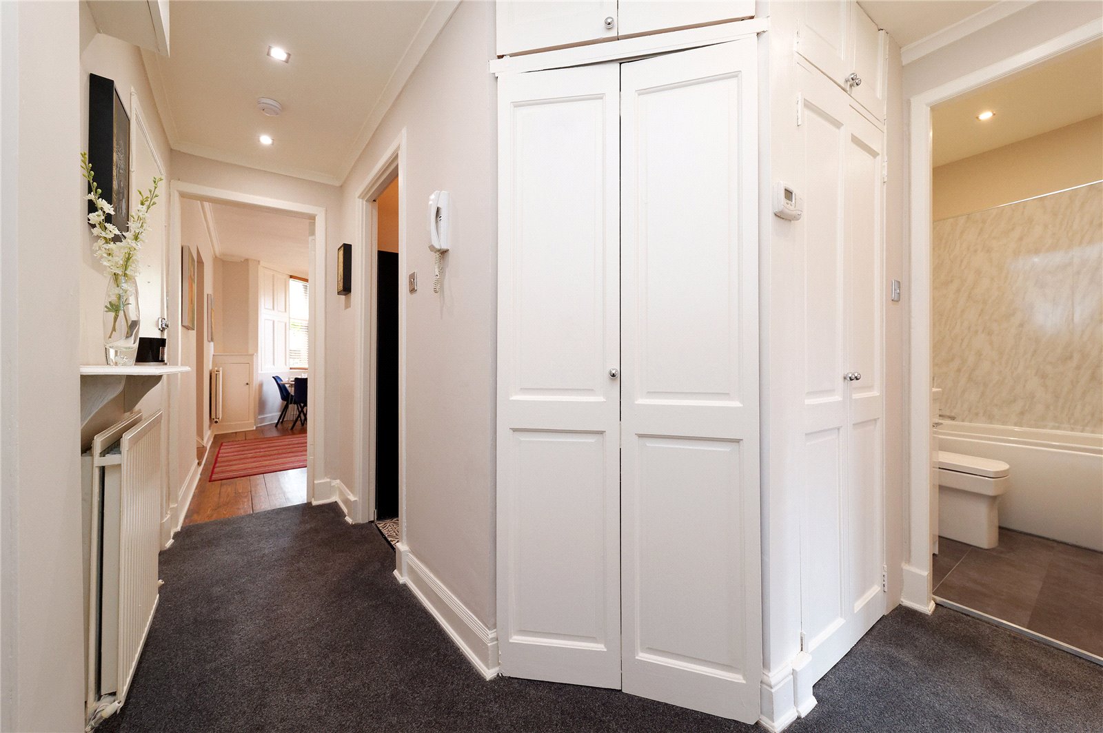 The communal entrance hall is well-kept and filled with natural light. The property benefits from gas central heating and a small private garden to the front of the building.