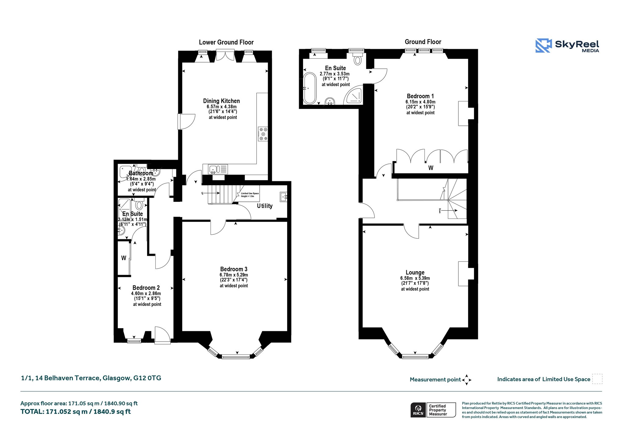 The property is entered via a security entry door into a well-presented communal hall, with access to the apartment on the ground floor level. Accommodation comprises fabulous bay windowed lounge with feature fireplace, substantial principal bedroom with generous storage and ensuite bathroom with separate shower. Stairs lead to the lower ground floor accommodation which comprises modern dining kitchen with double doors leading to the private rear garden, double bedroom with ensuite bathroom and further bedroom which could be utilised as guest bedroom, home office, or second lounge.