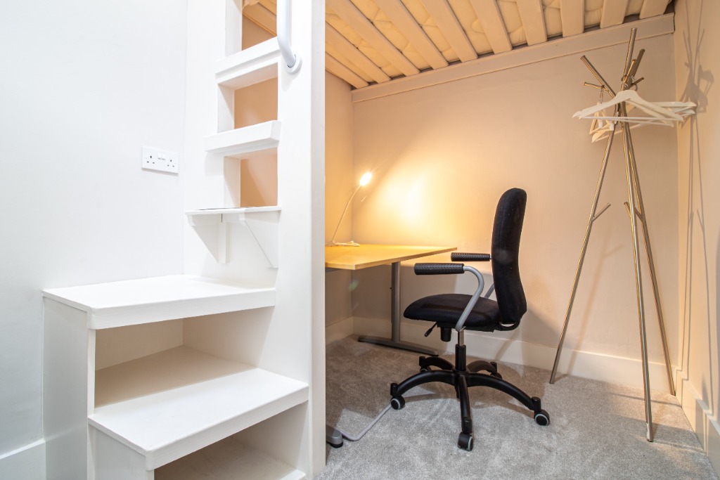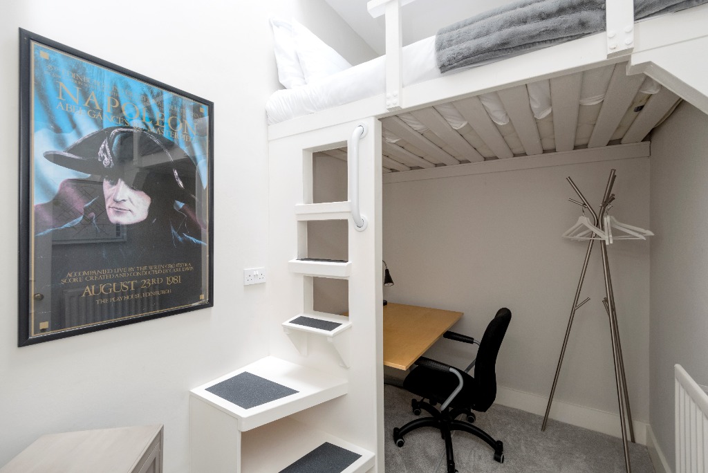 The property offers two king size bedrooms with ample storage and lovely views, a further double cabin bed with a unique study space below. A stylish bathroom with a deep bath and overhead shower.