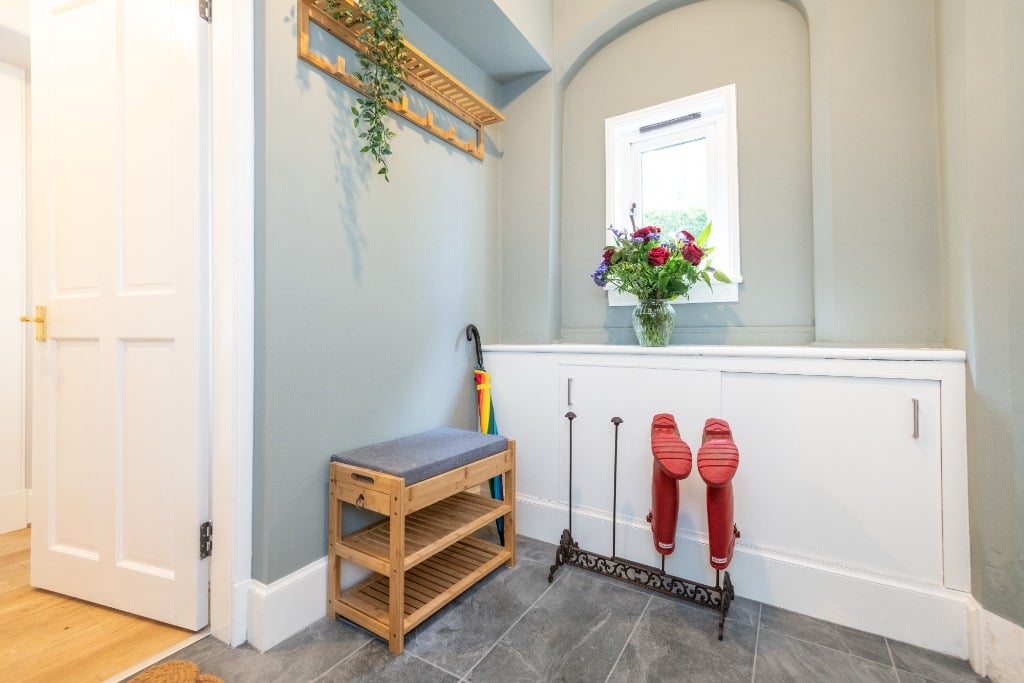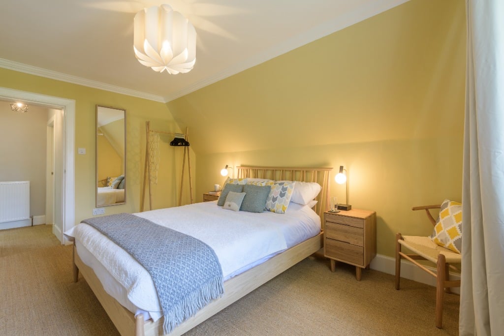 Entering the property, a private vestibule is the perfect space for taking off muddy boots and coats before settling down in the comfort of the Lodge. A lovely living room with TV, DVD Player and cosy blankets can also sleep additional guests using the sofa bed if required. Further accommodation on the ground floor comprises; an open and spacious dining room, family bathroom with vanity mirror and separate kitchen with modern appliances including a boiling hot water tap. From the kitchen there is direct access to the rear of the private garden. Wireless charging pads and USB sockets are available throughout.