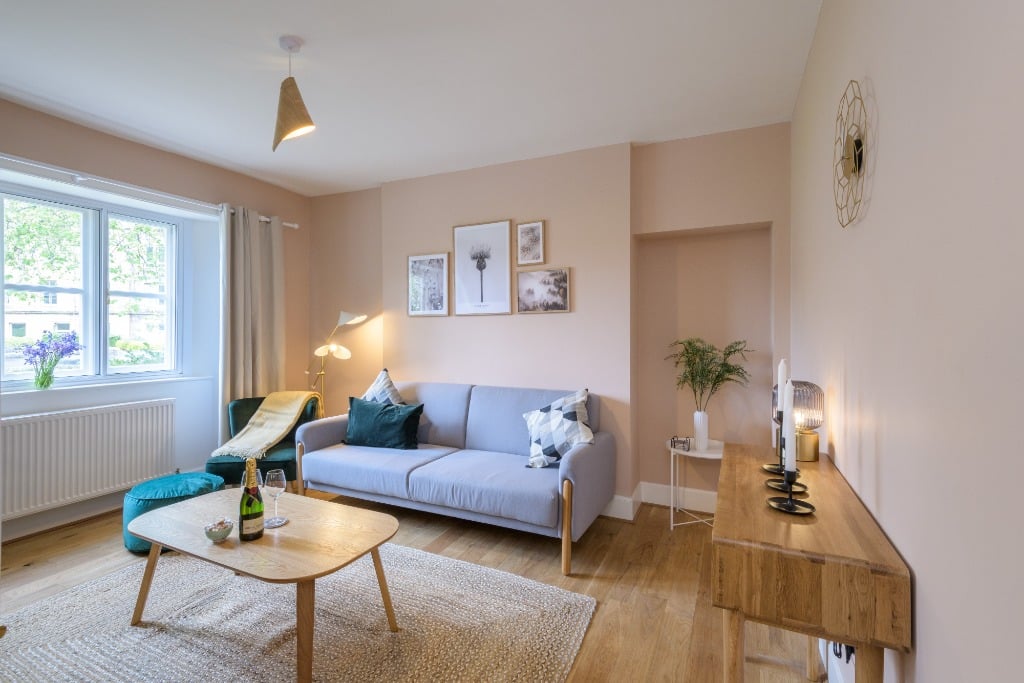 Upstairs are two bedrooms, the main double bedroom and a twin bedroom with ample storage space. The property also benefits from private off-street parking for one vehicle in addition to ample free parking in the adjacent Meadowbank Car Park.
