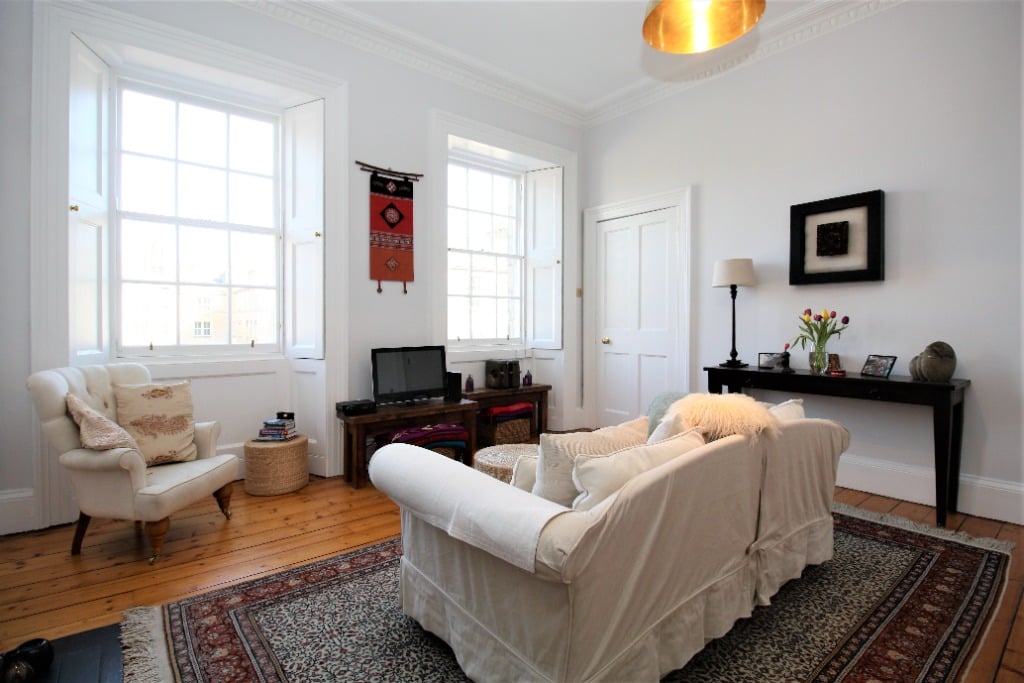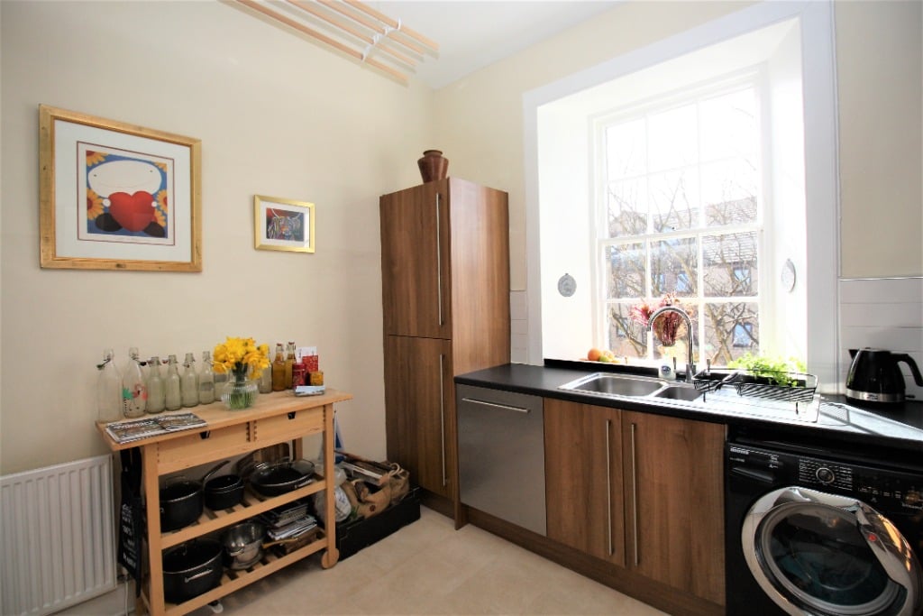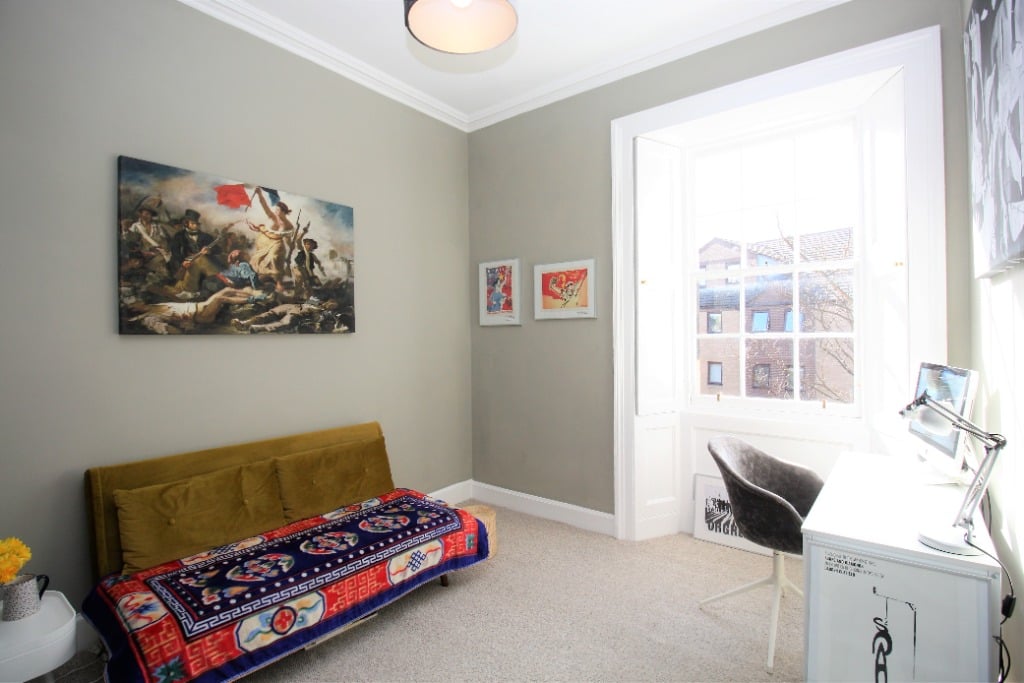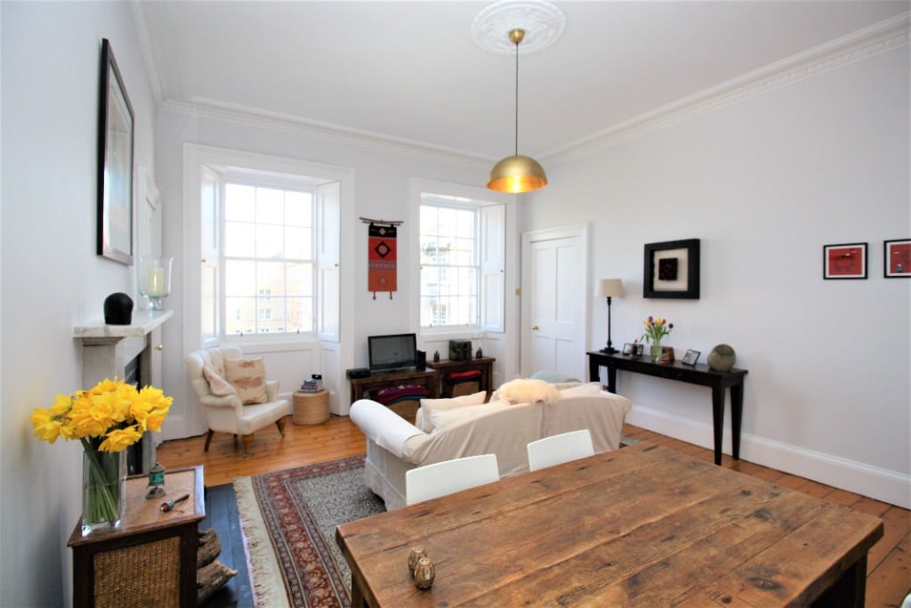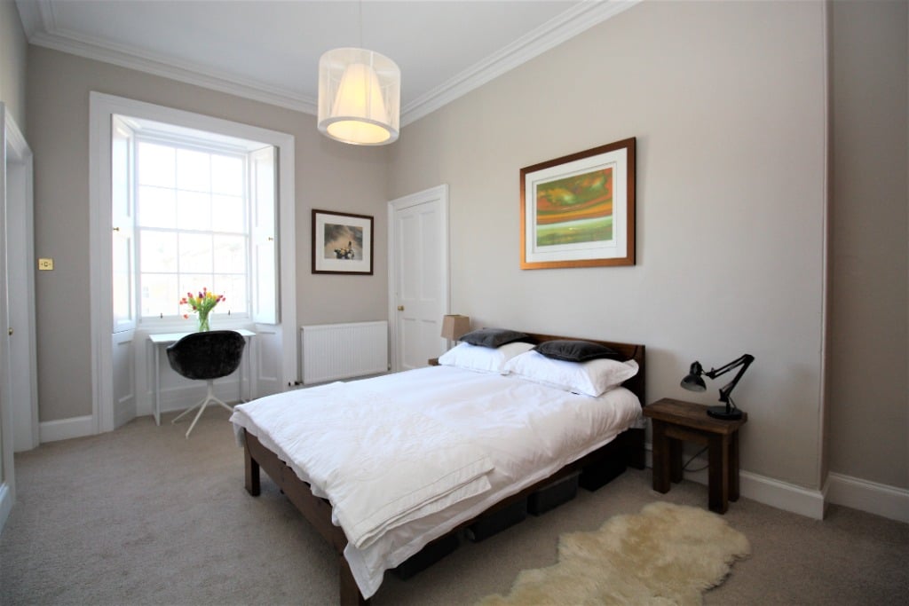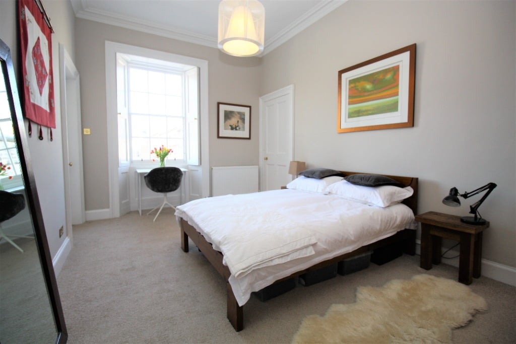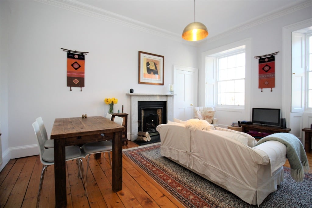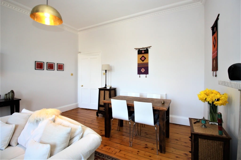 This fantastic two bedroom property is generously proportioned throughout. Accommodation comprises; a large reception hallway, comfortable living room with a dining area for four flooded with natural light from the dual windows which look up to Arthurs Seat and Salisbury Craggs. A fully equipped kitchen with a gas hob, oven, dishwasher and fridge freezer; a large double bedroom with ample storage space, and a further second bedroom with a pull out futon (small double) quietly positioned to the rear of the property, a generous shower-room and a separate WC.