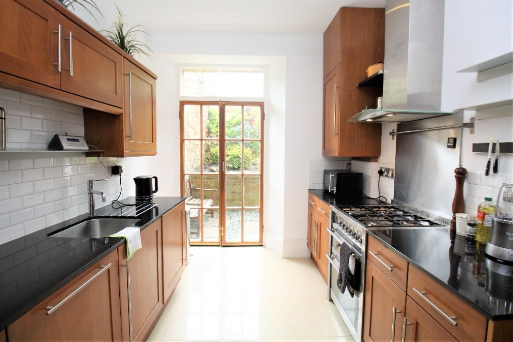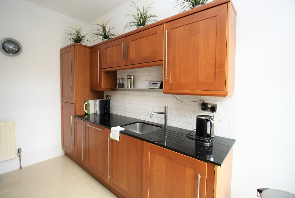 Accommodation comprises; a large and spacious double bedroom with ample wardrobe space, bay window and an ensuite shower room, a contemporary kitchen which is fully fitted with integrated appliances, and French doors leading out to the private garden to the rear. A comfortable living room with a dining table to sit 4 guests, and a further family bathroom with a shower over the bath.