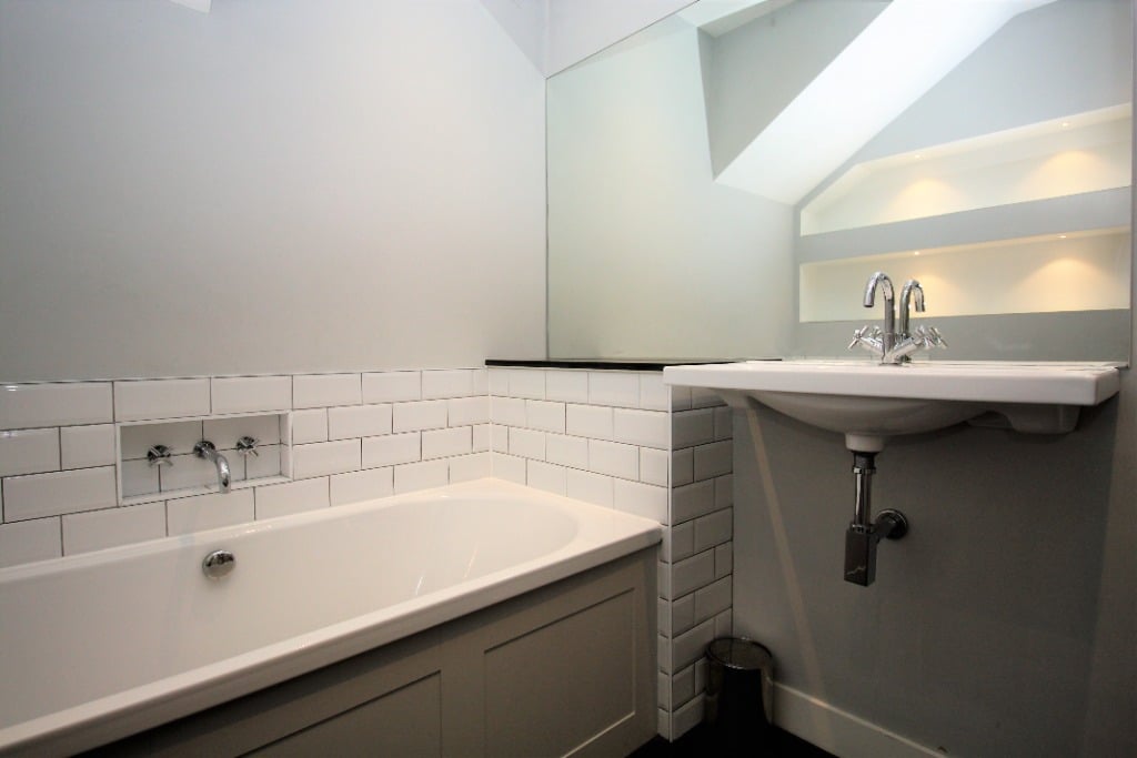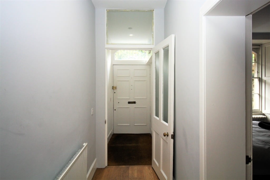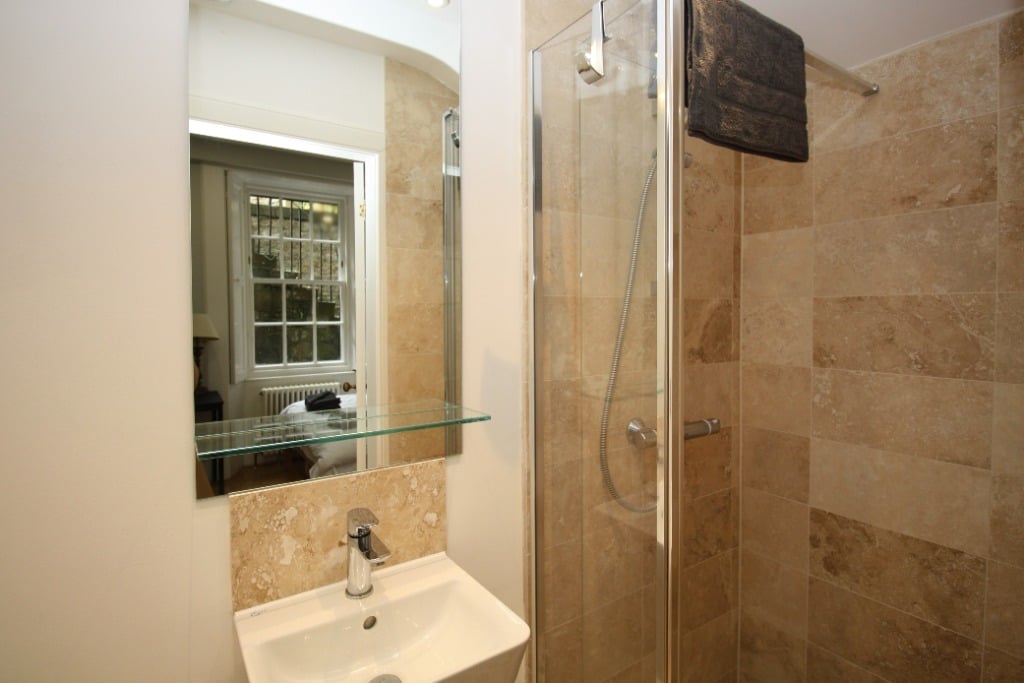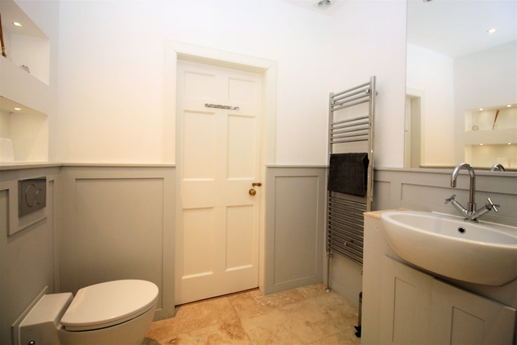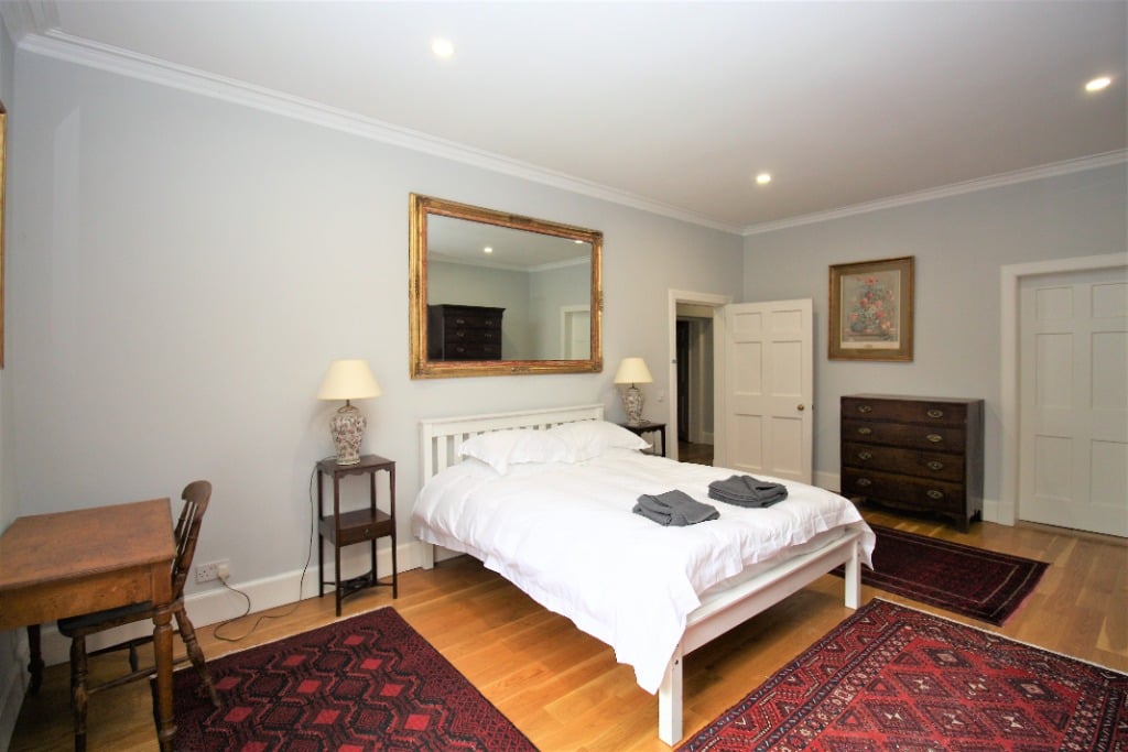 Entering the apartment on the lower ground floor into the hallway, the doors lead off to all the rooms. To the left-hand side is one of the large and spacious double bedrooms with a window overlooking the courtyard and an ensuite bathroom with a shower over the bath. To the right-hand side, there is a further double bedroom with ensuite bathroom with a separate shower and bath.