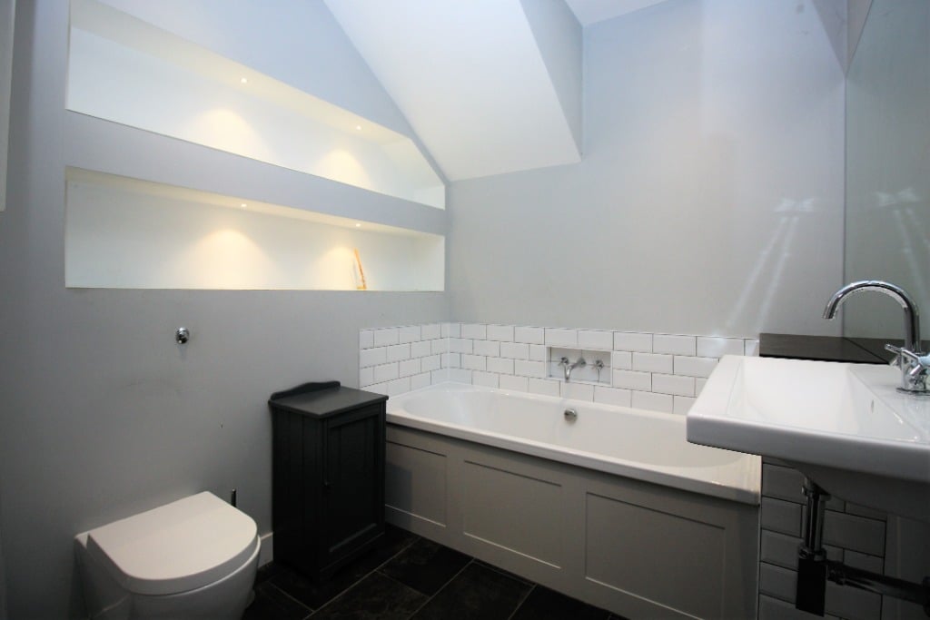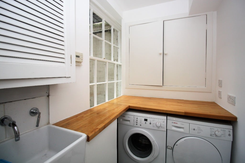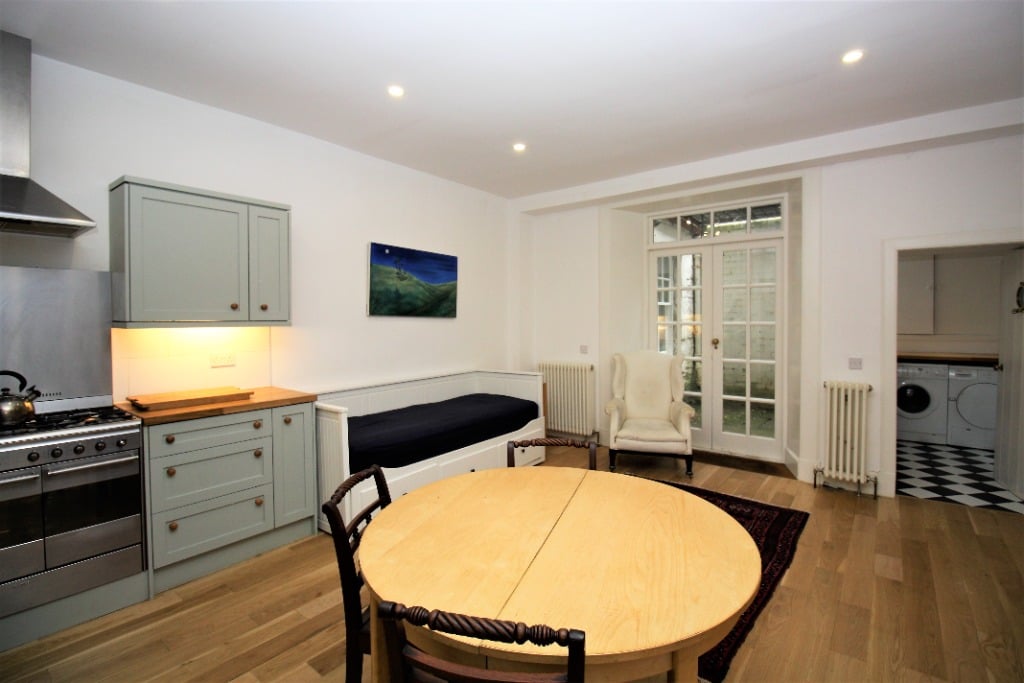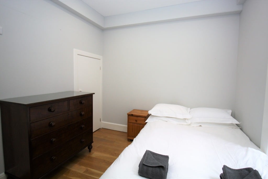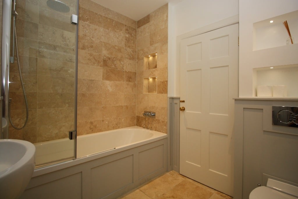 Entering the apartment on the lower ground floor into the hallway, the doors lead off to all the rooms. To the left-hand side is one of the large and spacious double bedrooms with a window overlooking the courtyard and an ensuite bathroom with a shower over the bath. To the right-hand side, there is a further double bedroom with ensuite bathroom with a separate shower and bath.